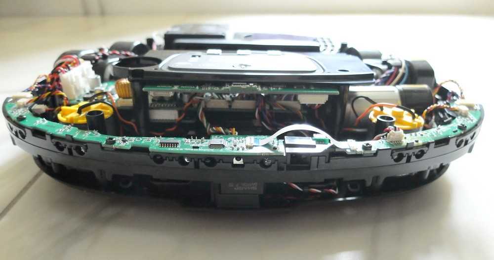 При взгляде на гаджет спереди, он похож на летающую тарелку, которую пришельцы разобрали. Здесь находятся ИК сенсоры и PSD, необходимые для определения расстояния до предметов.