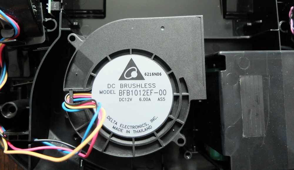 Сзади нашлось место для моторного блока. Бесколлекторный мотор от Delta Electronics, скрывающийся под крышкой, узнать можно по широким лопастям, благодаря которым он работает бесшумно.