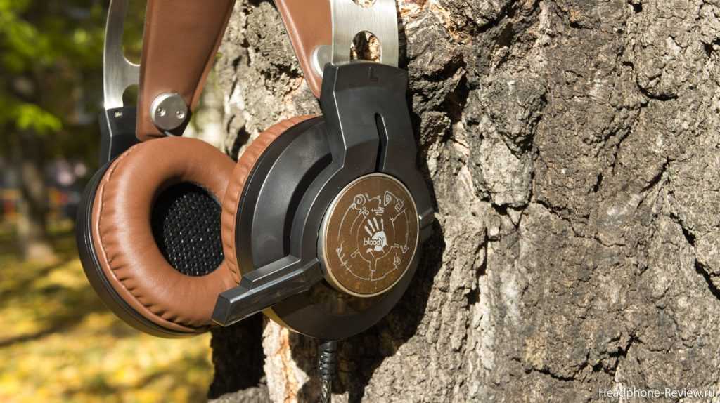 На внешней стороне чаш нанесен рисунок, в центре которого расположен логотип бренда Bloody. Если подключить гарнитуру к USB разъёму, рисунок будет подсвечен приятным оранжевым цветом.