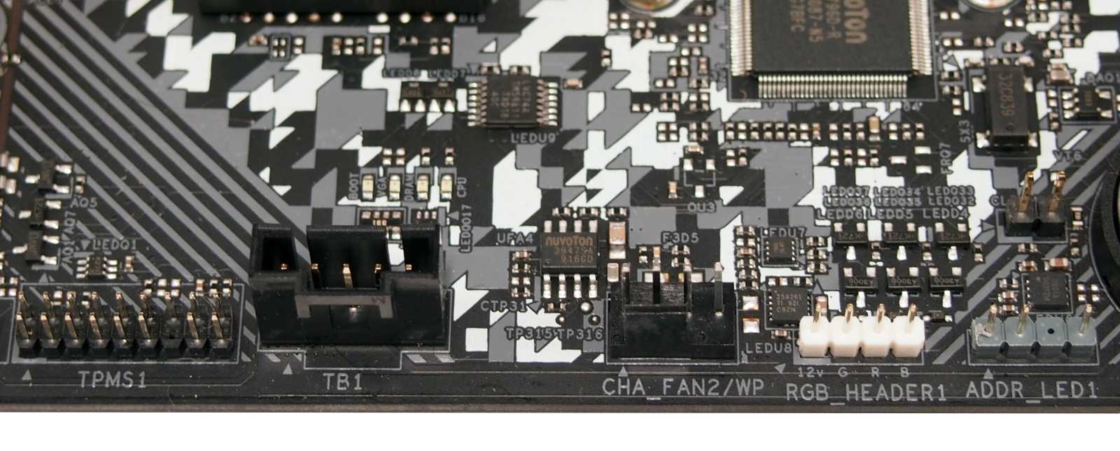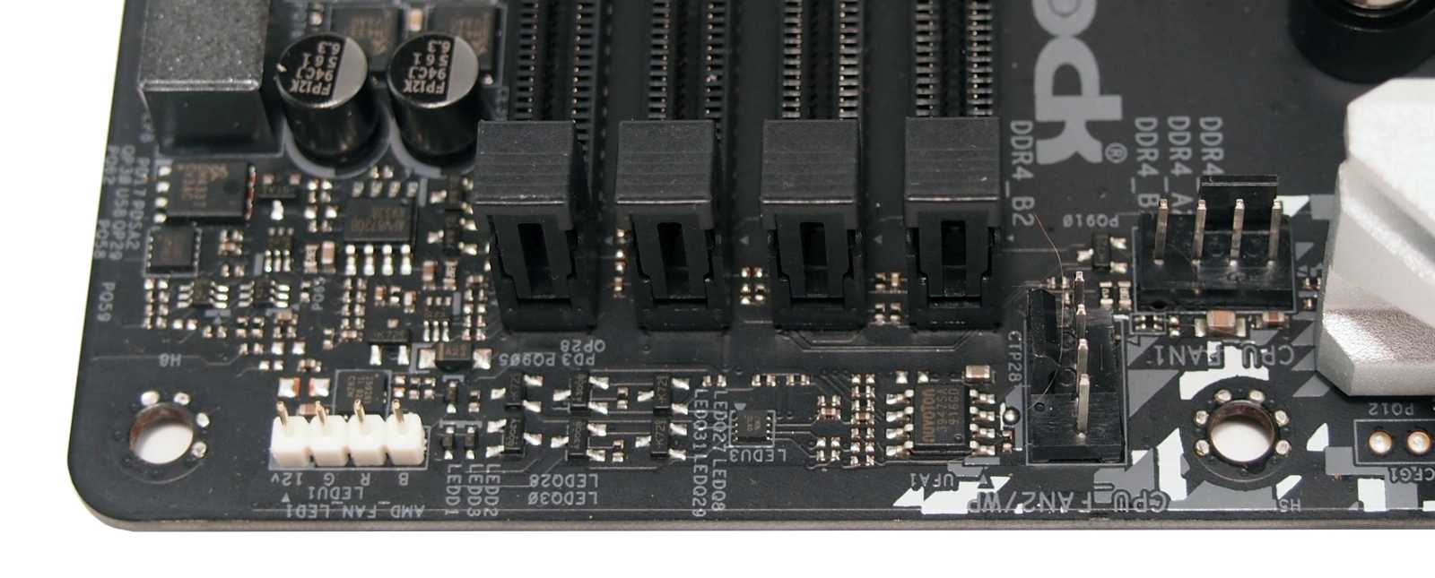 Без внимания в случае с X570 Steel Legend не осталась и поддержка элементов подсветки RGB. Один коннектор +12В RGB присутствует в нижней части PCB, а второй нашел свое место над разъемами оперативной памяти.