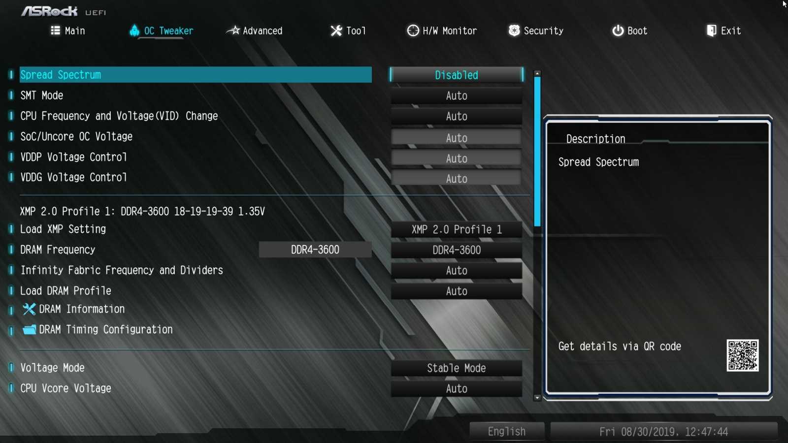 Перед тем, как приступить к детальному тестированию X570 Steel Legend, мы обновили BIOS материнской платы до самой свежей версии P1.70 от 12/08/2019. Оперативная память Corsair Vengeance RGB Pro DDR4-3600 без проблем заработала на своей штатной частоте 3600 МГц с помощью активации XMP профиля.