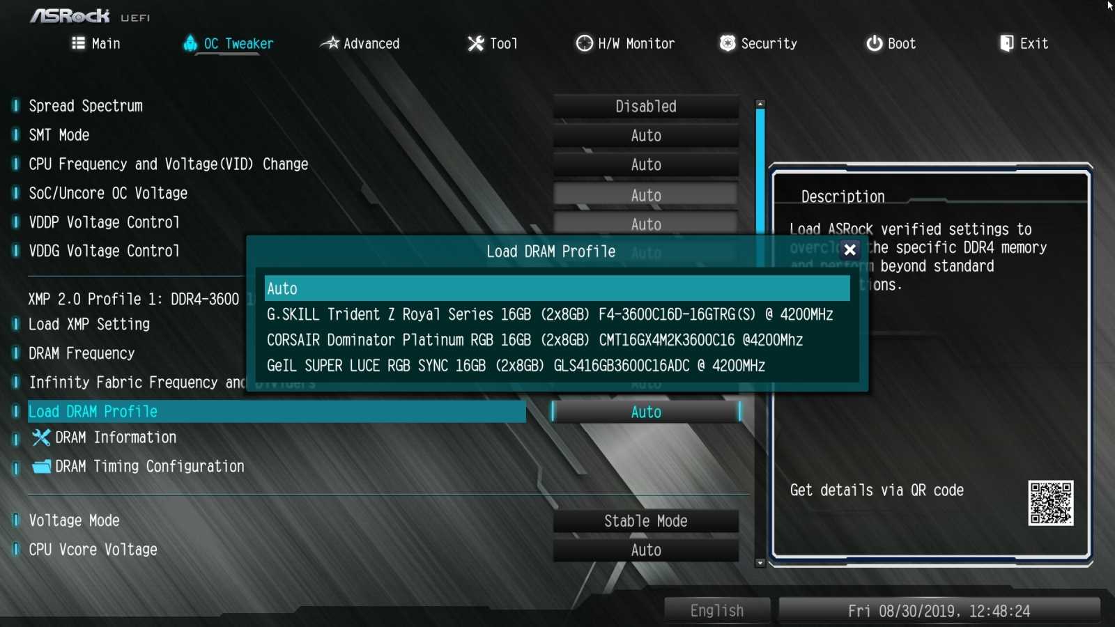 Основные возможности для ручного разгона процессора и оперативной памяти собраны в разделе «OC Tweaker». Для некоторых наиболее известных оверклокерам комплектов памяти есть даже готовые профили разгона.
