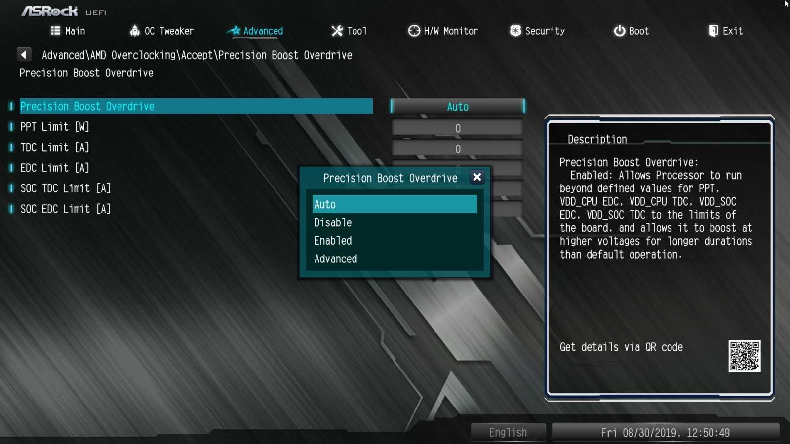 Часть настроек для работы системы сосредоточена в разделе «Advanced». В нем же находятся и опции PBO, от которых зависит производительность центрального процессора.