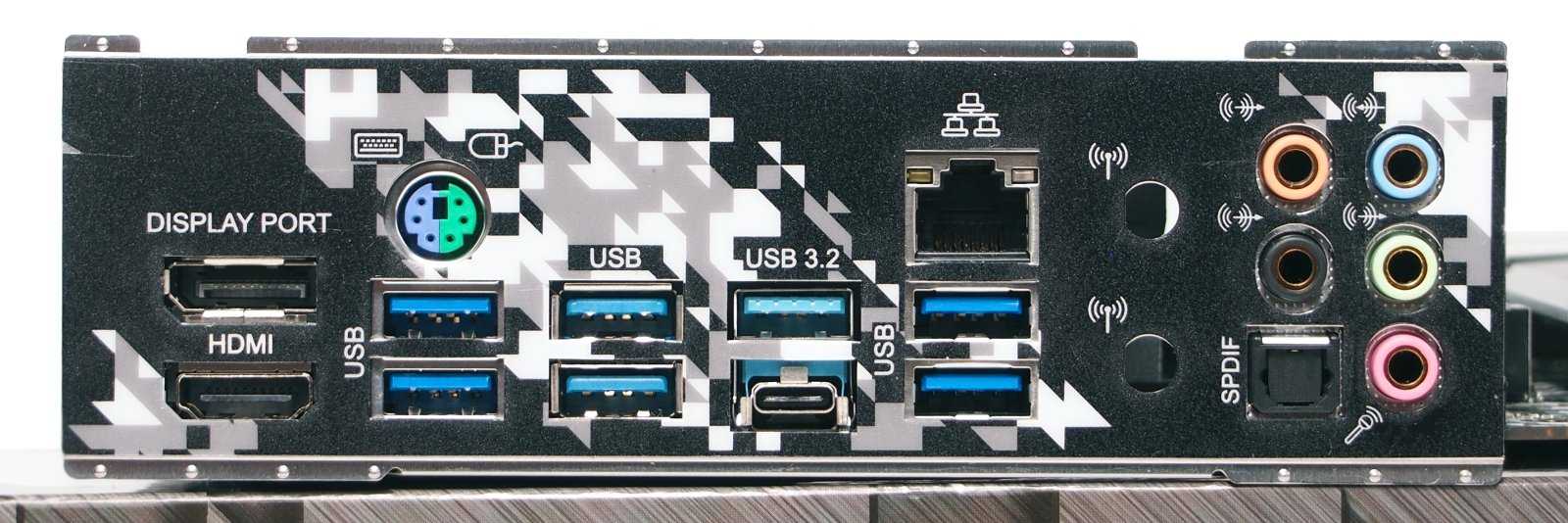 Ну и по мелочам. Сетевой контроллер – гигабитный Intel I211AT прямиком из 2012 года, зато с поддержкой Wake-On-Lan. На панели разъёмов сзади имеем шесть USB 3.2 Gen1 Type-A, один USB 3.2 Gen2 Type-C, аудиоразъёмы вместе с моим заклятым другом S/PDIF, PS/2 и HDMI. Последний – версии 2.0 с поддержкой HDR.
