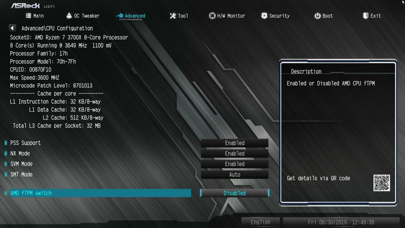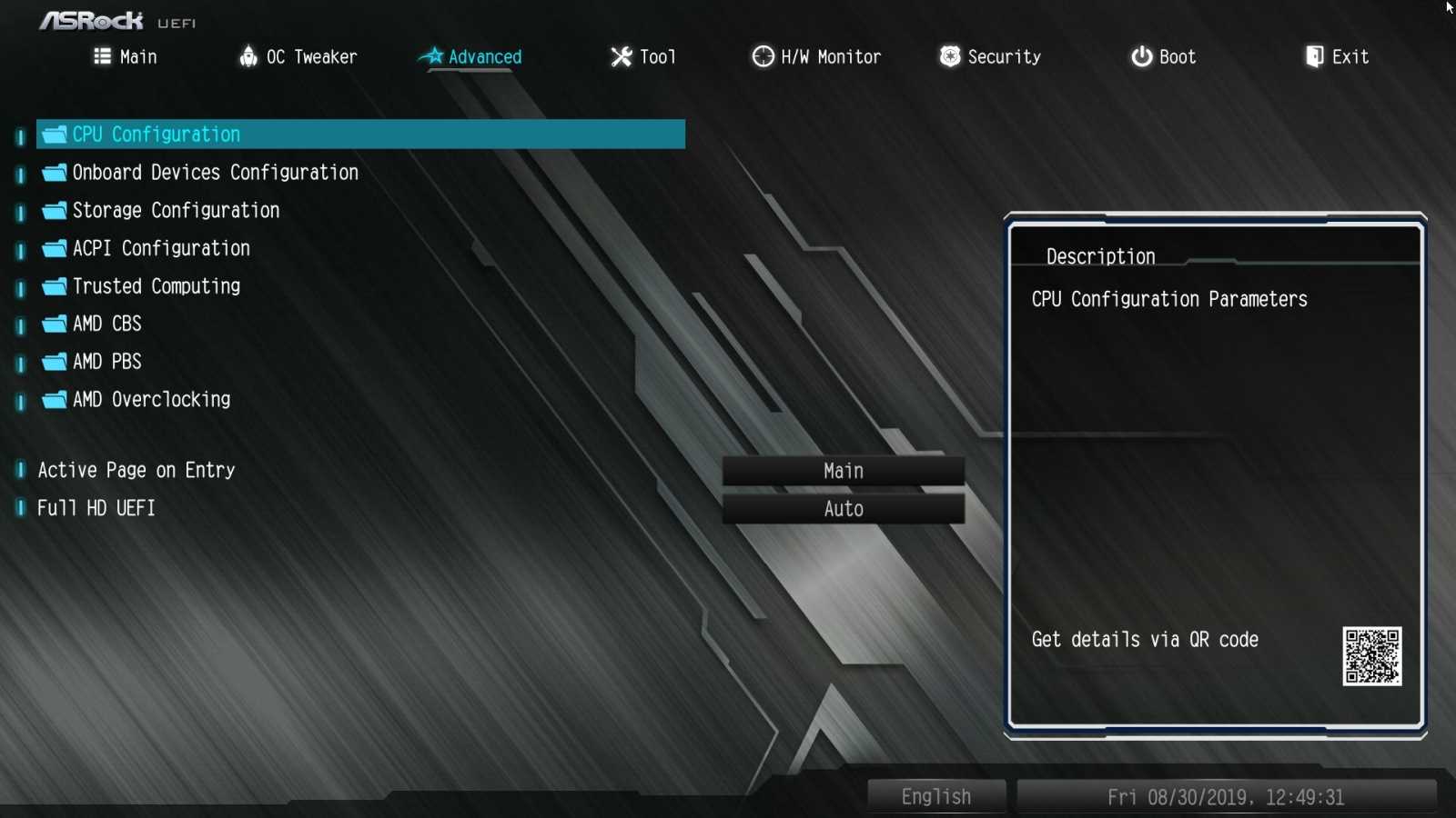 Оболочка BIOS материнской платы X570 Steel Legend оформлена в привычном для компании ASRock корпоративном стиле. Приятным сюрпризом для нас стала поддержка разрешения FullHD, что явно прибавило в детализации и качестве интерфейса настроек. Пользователя встречает раздел «Main», в котором отображается информация о версии BIOS, модели установленного процессора, количества и частоты оперативной памяти.