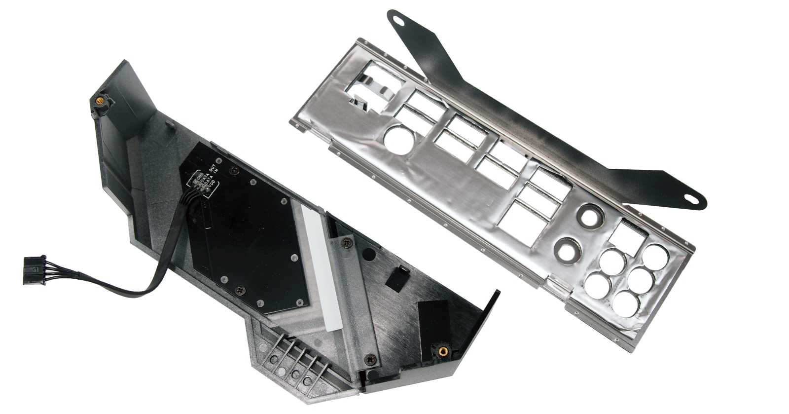 Для лучшего рассмотрения X570 Steel Legend мы демонтировали часть элементов с материнской платы. В первую очередь была снята предустановленная заглушка для тыльной панели разъемов и декоративный пластиковый кожух со встроенным модулем RGB-подсветки.
