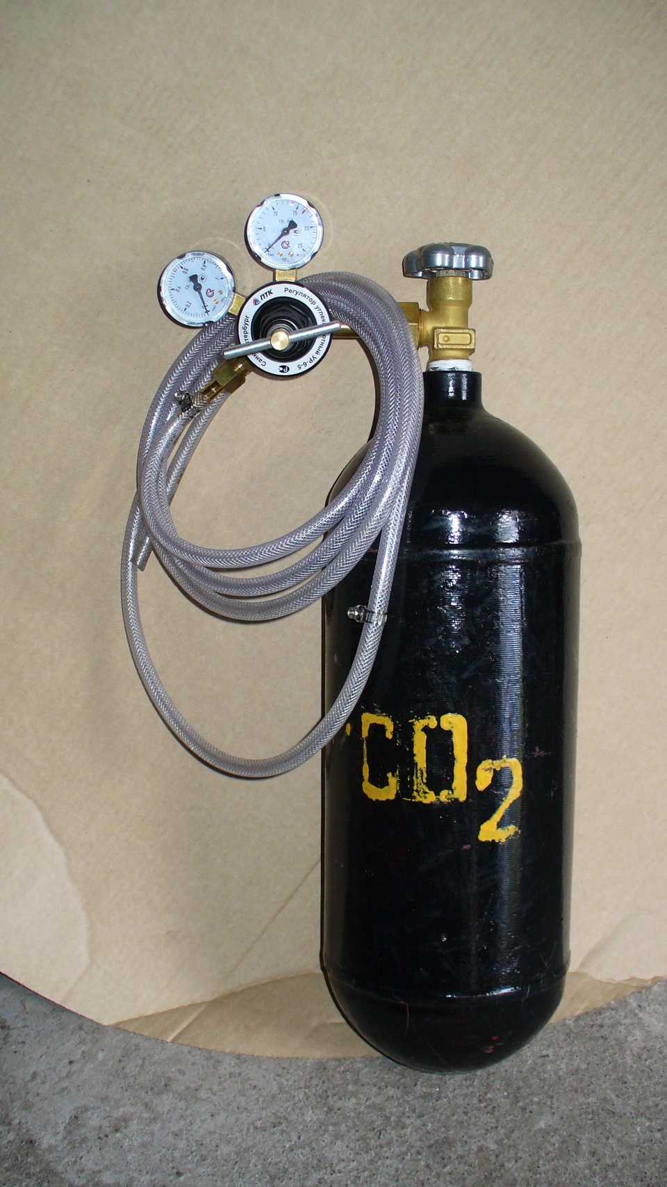Для своих задач этот выбор считаю оптимальным. Ну а в качестве углекислотного баллона использован старый огнетушитель. После аттестации, перекраски и установки вентиля с редуктором он получил новую жизнь.