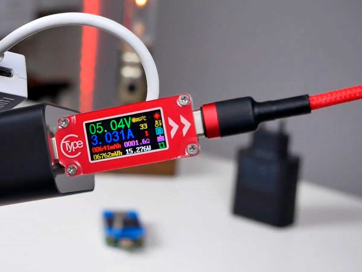 После подключения в розетку на экранчике появляются цифры, которые почему-то показывают напряжение 50 В, которое данная зарядка вообще не должна выдавать (максимум 20 В, по умолчанию должно быть 5 В).