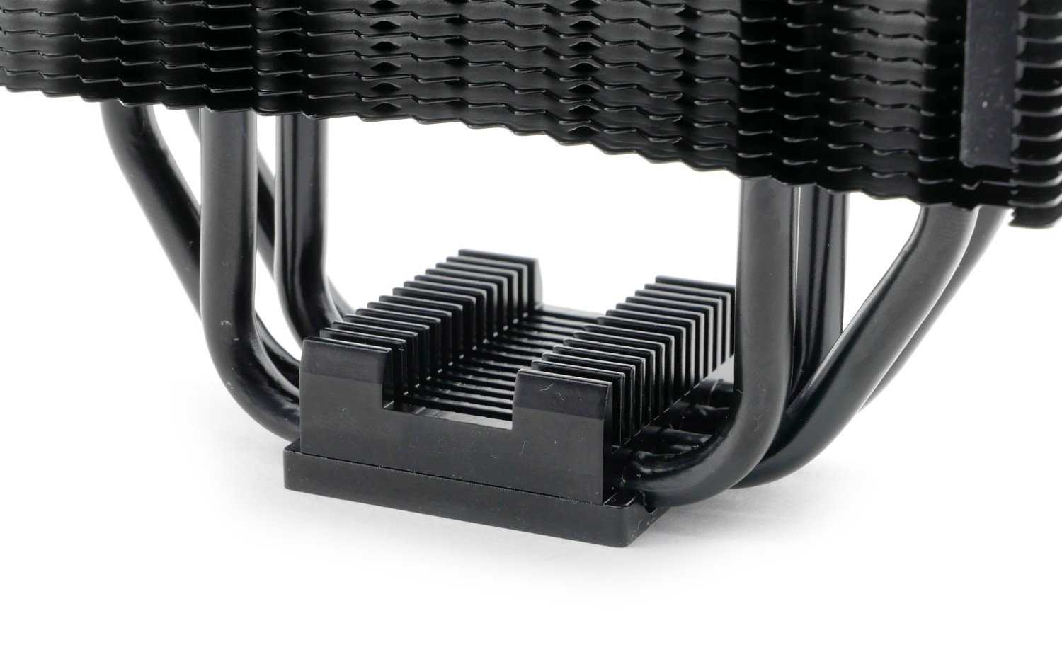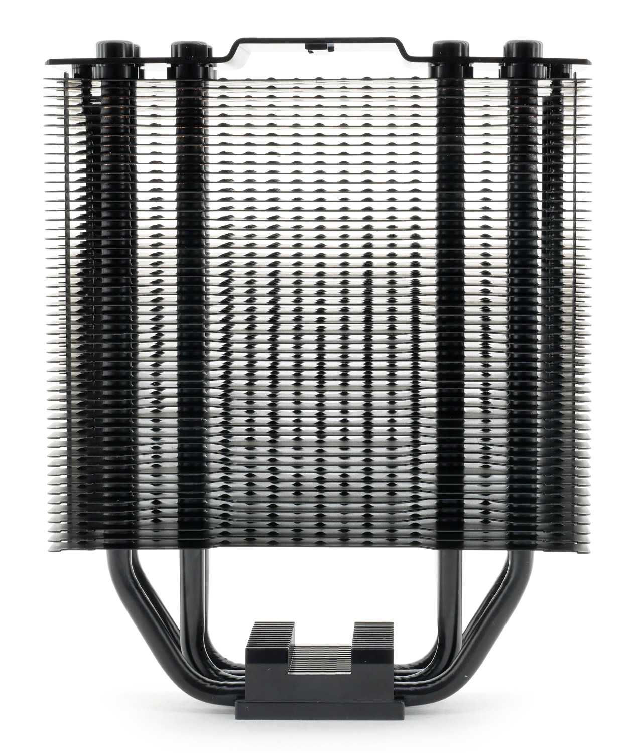 Непосредственно для достижения необходимого эффекта и придания кулеру стройностиколичество тепловых трубок было уменьшено с шести до четырех диаметром 6 мм каждая, что позволило стать новинке уже на 24 мм.