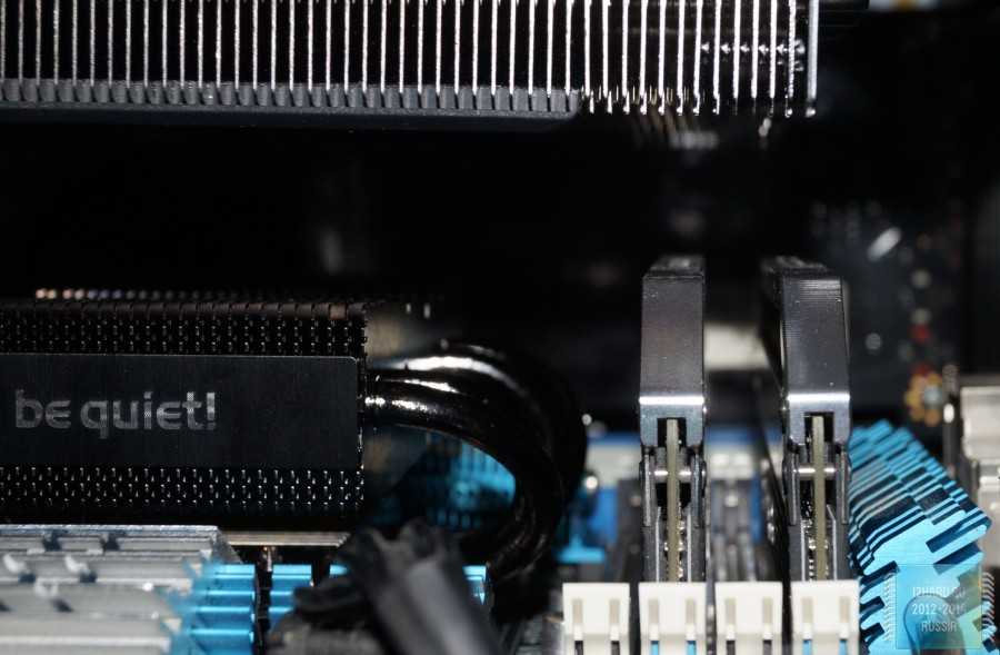 Расстояние между радиаторами составляет 23 мм – аккурат для того, чтобы туда вошёл только фирменный радиатор be quiet! SilentWings толщиной 22 мм. В торцах пластин обоих радиаторов сделаны небольшие прорези-углубления в целях снижения сопротивления воздушного потока и уменьшения уровня шума.