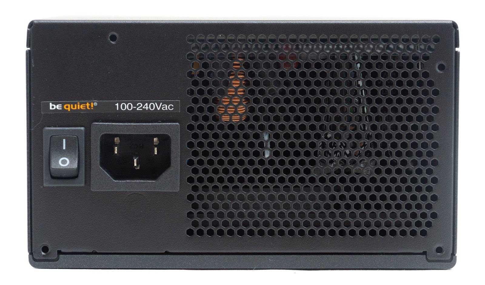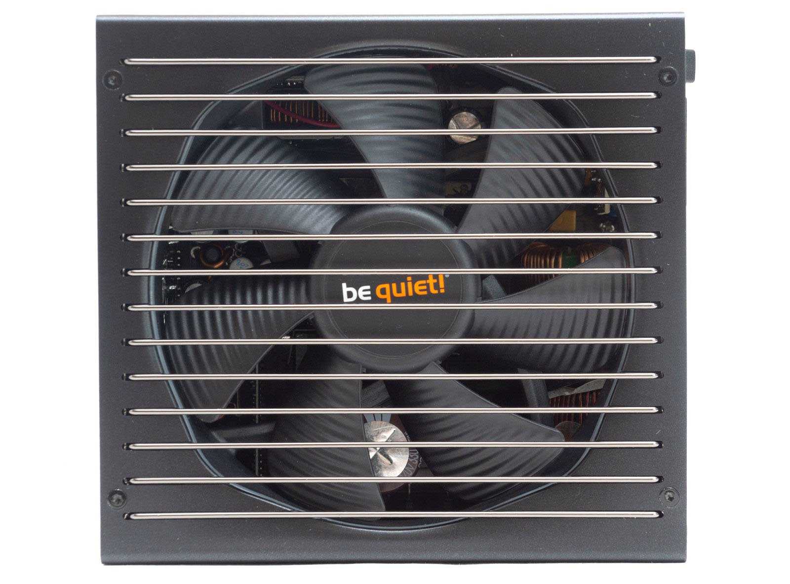 По размерам be quiet! Straight Power 11 стандартен – 160х170х86 мм. Внешность его тоже привычная всем фанатам компании. Спереди решетка, которая прикрывает 135-мм вентилятор SilentWings 3, по бокам – тиснёный вперёд логотип компании, 8 коннекторов под кабели питания, наружная сторона с разъемом для сетевого кабеля с кнопкой включения по соседству и сбоку – наклейка с информацией о модели.