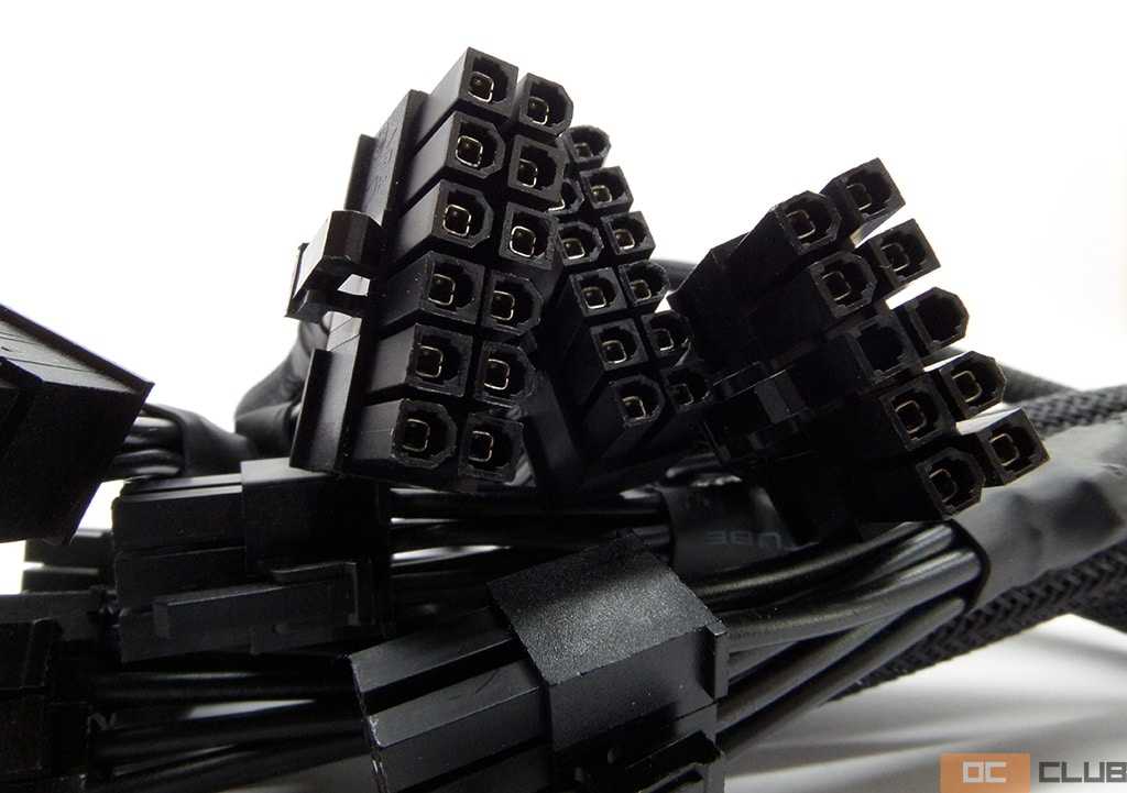 Необычно смотрится решение кабелей для CPU и PCI-E — не разветвитель на конце, а кабели полноценной длины для каждого разъема. Насколько удобно укладывать два провода вместо одного, покажет сборка. Наличие дополнительного одинарного кабеля для питания CPU — это предусмотрительная забота об удобстве пользователя, не всем требуется два разъема.