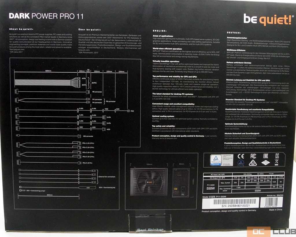 С первых же строк итога, ведь я-то знаю, что только его в основном и читают, отмечу, что Be Quiet! Dark Power Pro 11 550 Вт – самый тихий блок питания, побывавший в редакции OCClub.ru, и прошедший через мои руки, которые майнили ещё до того, как это стало мейнстримом. Он почти бесшумен ухом в упор – всего ~600 об/мин тому в подтверждение. Небольшая поправочка: самый тихий среди тех, у которых вообще есть какой-нибудь «карлсон». Но это флагманский БП лучшего германского производителя, а значит спрос будет сполна не только по пунктику тишины.