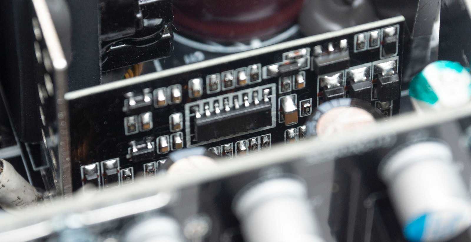 Фильтрация помех на выходах осуществляется за счет полимерных и электролитических конденсаторов японского производства Rubicon и Nippon Chemi-Con.