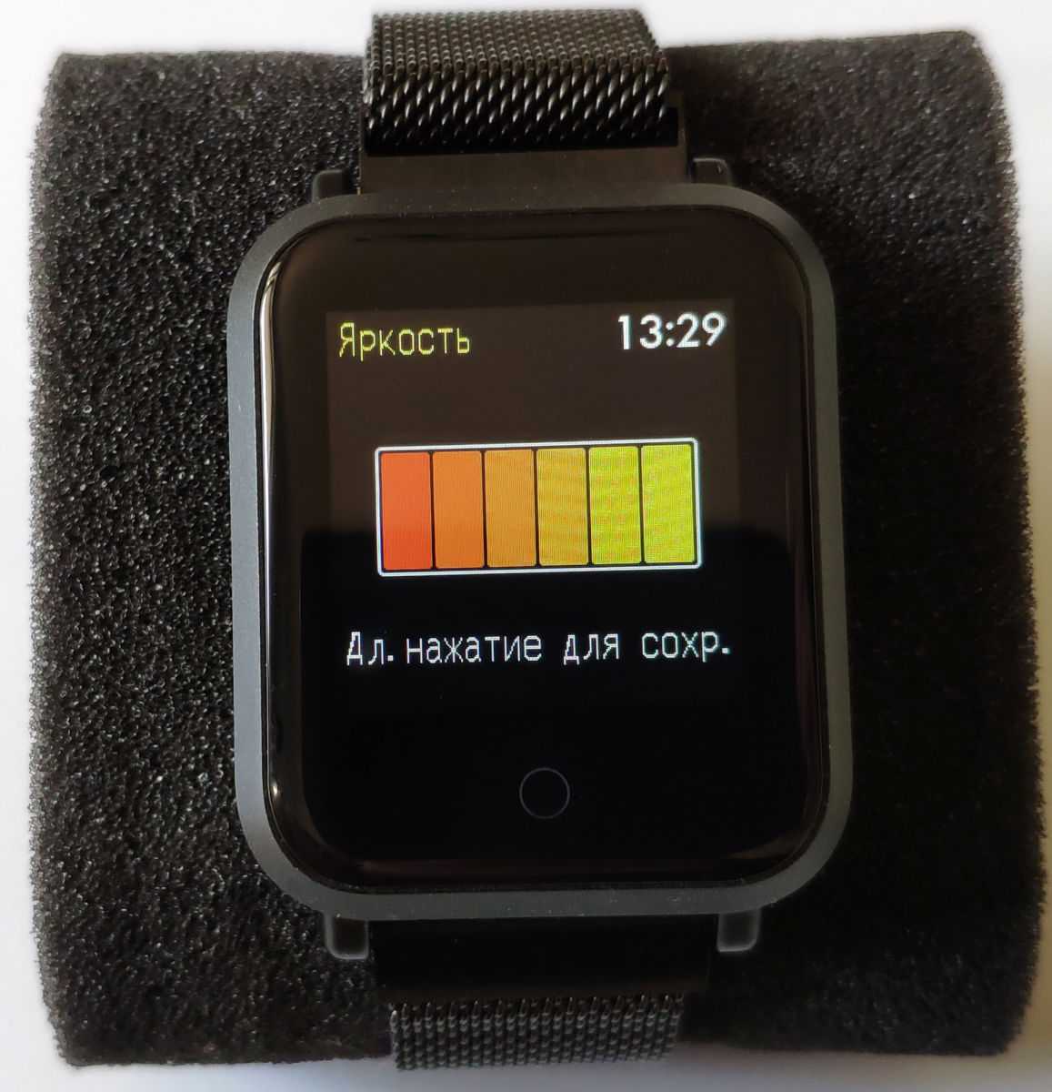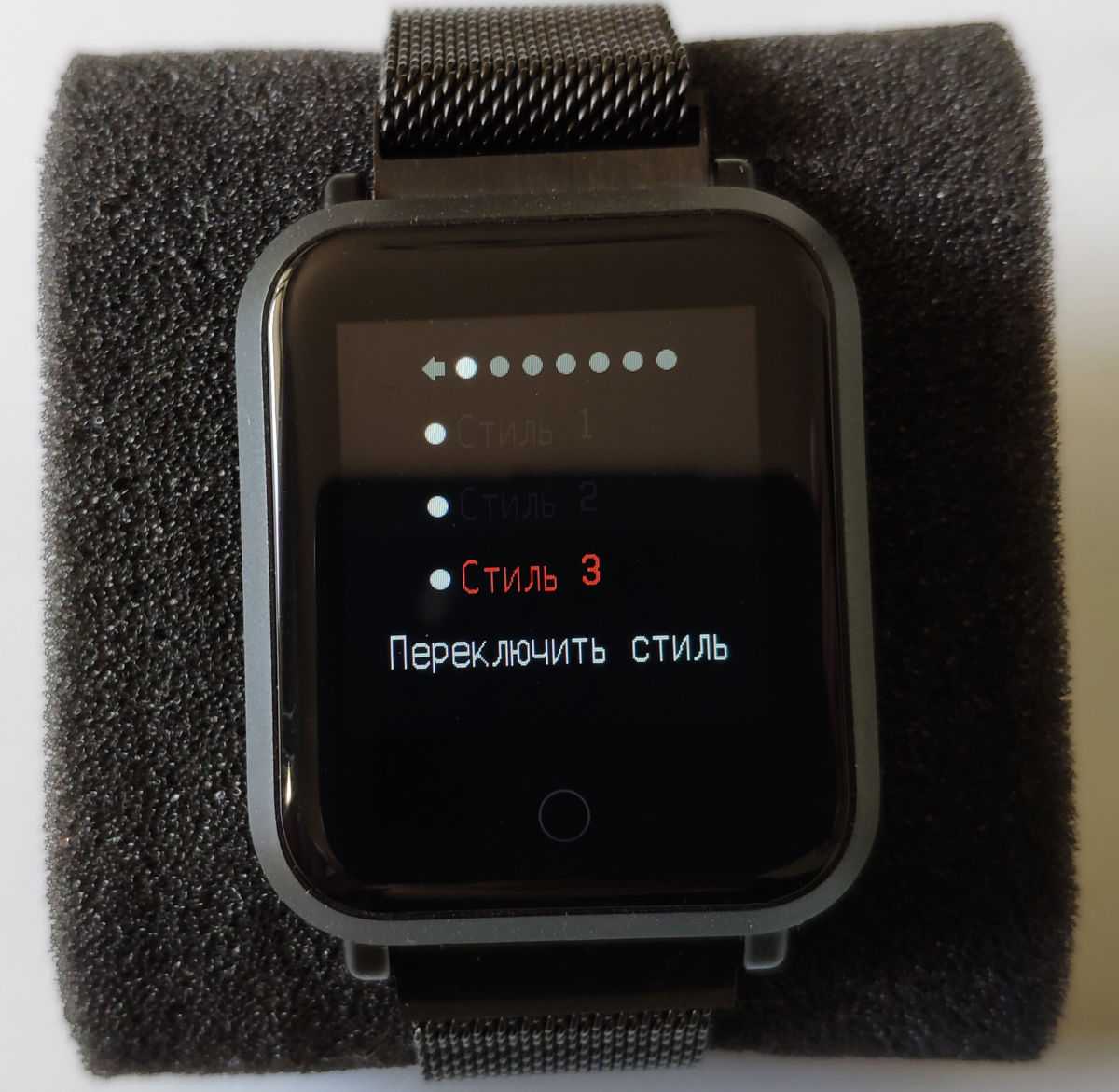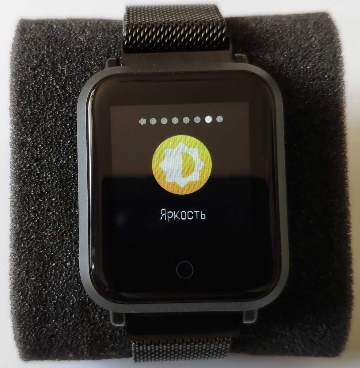 В последнем можно также установить один из трех типов главного экрана часов, выбрать яркость (для комфортного просмотра под открытым небом лучше выбрать максимальный уровень). Также в настройках можно включить секундомер, беззвучный режим (т.е. без вибрации, т.к. динамика в часах не предусмотрено).