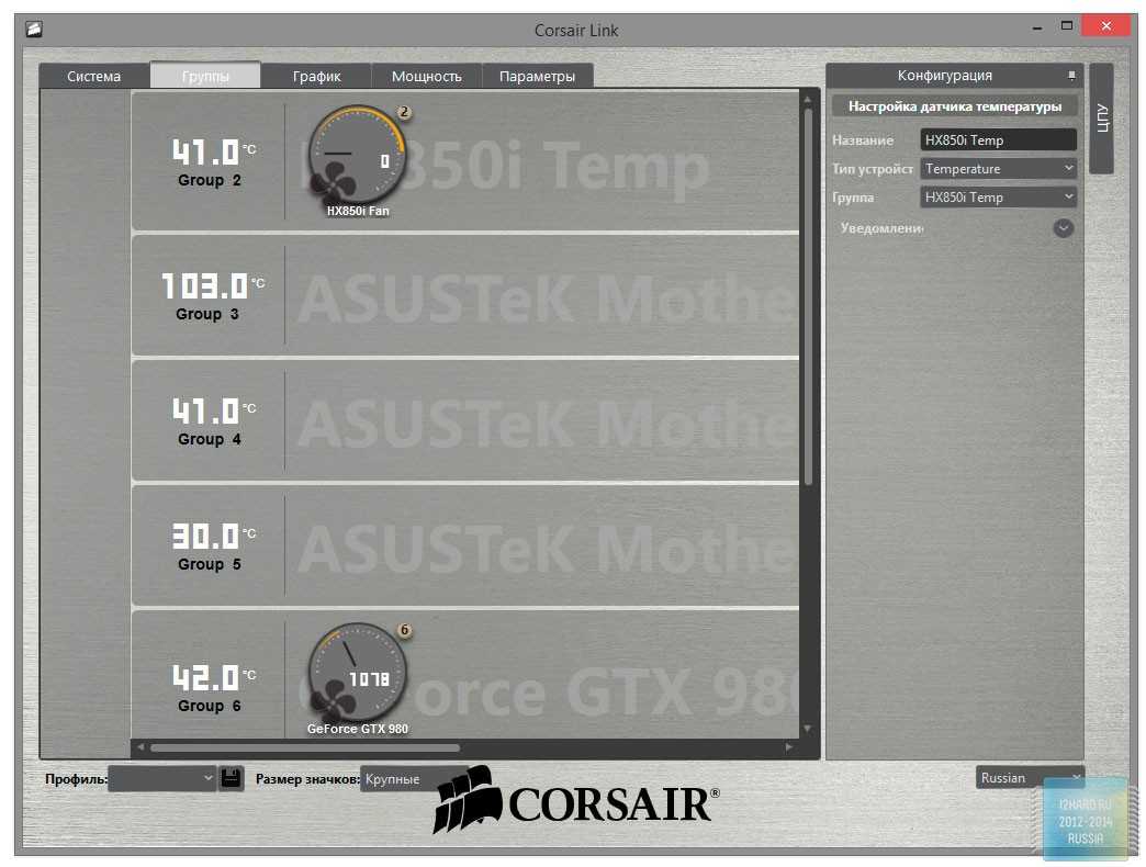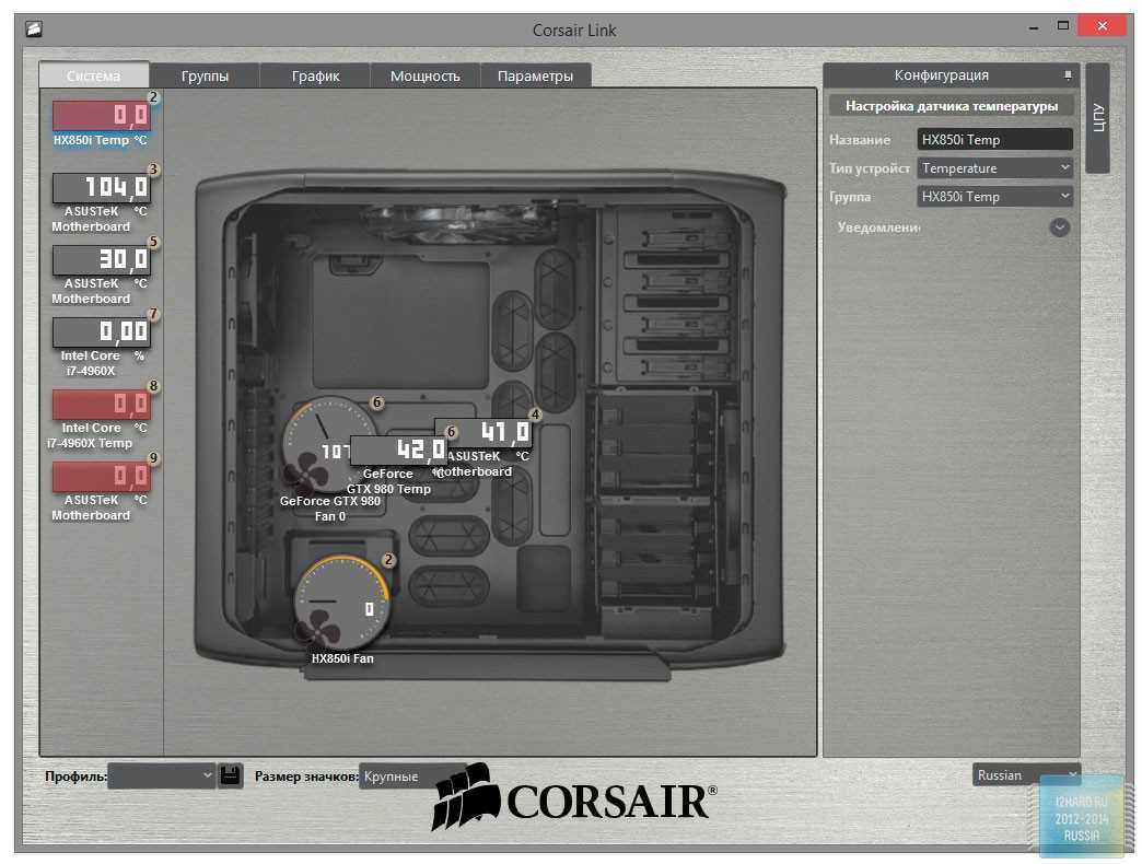 Утилита Corsair Link позволяет считать основные показатели блока питания