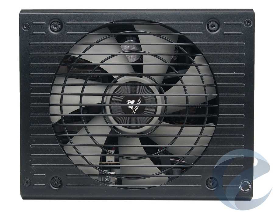 Вентилятор охлаждения на Corsair HX750 закрыт защитной проволочной решеткой. Для дополнительной стилизации корпус Corsair HX750 имеет фальш продолжения решетки.