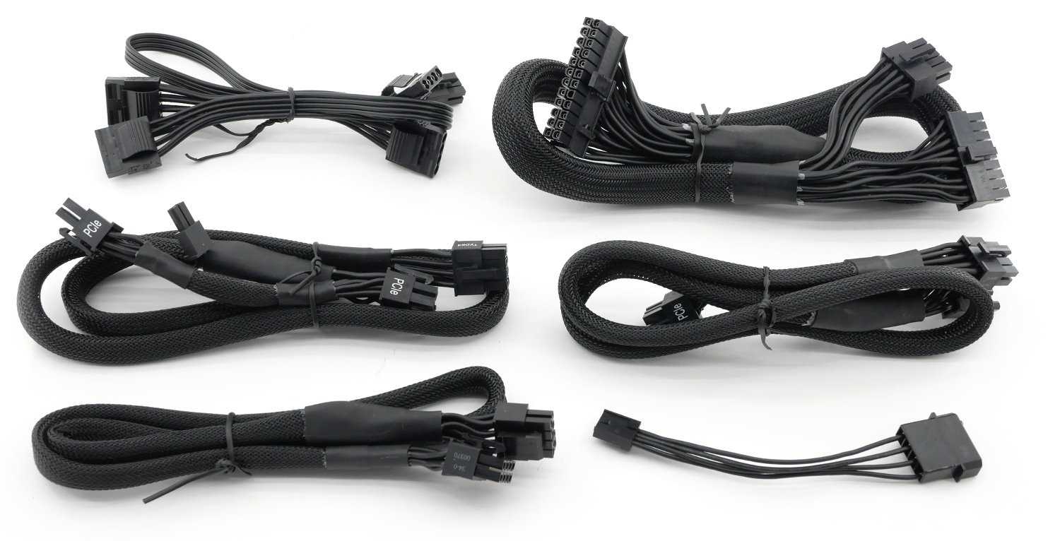 В комплекте с блоком питания идут тонкие низкопрофильные отстёгивающиеся кабели. Они немного мягче, если сравнивать их с теми, что в комплектации с серией AX. В меру мягкие кабели очень сильно упростят процесс сборки и подключения устройств, сделав её в целом удобнее.