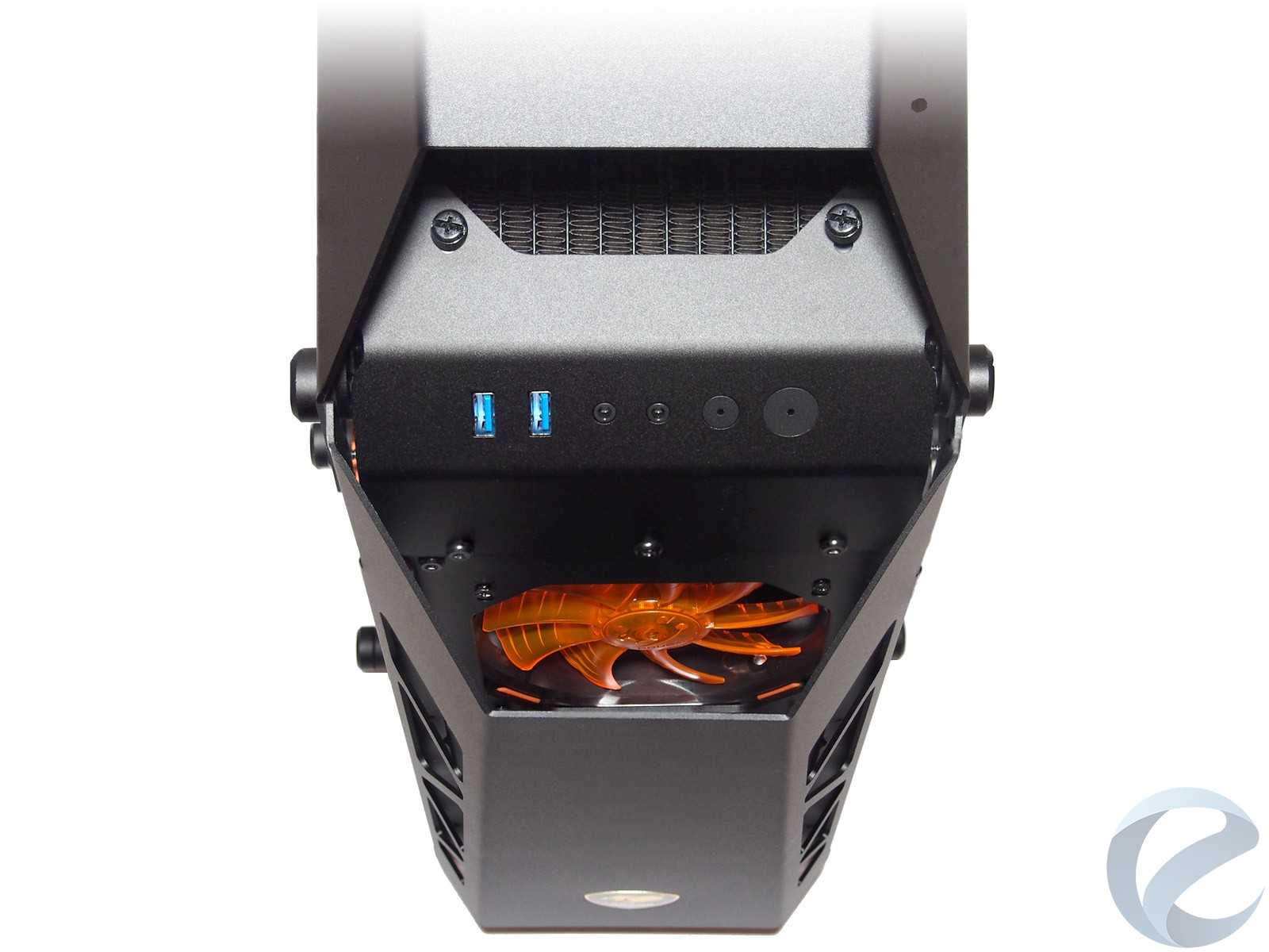 Под верхней частью корпуса расположен кронштейн для двух 120-мм вентиляторов или радиатора системы жидкостного охлаждения до 240-мм.