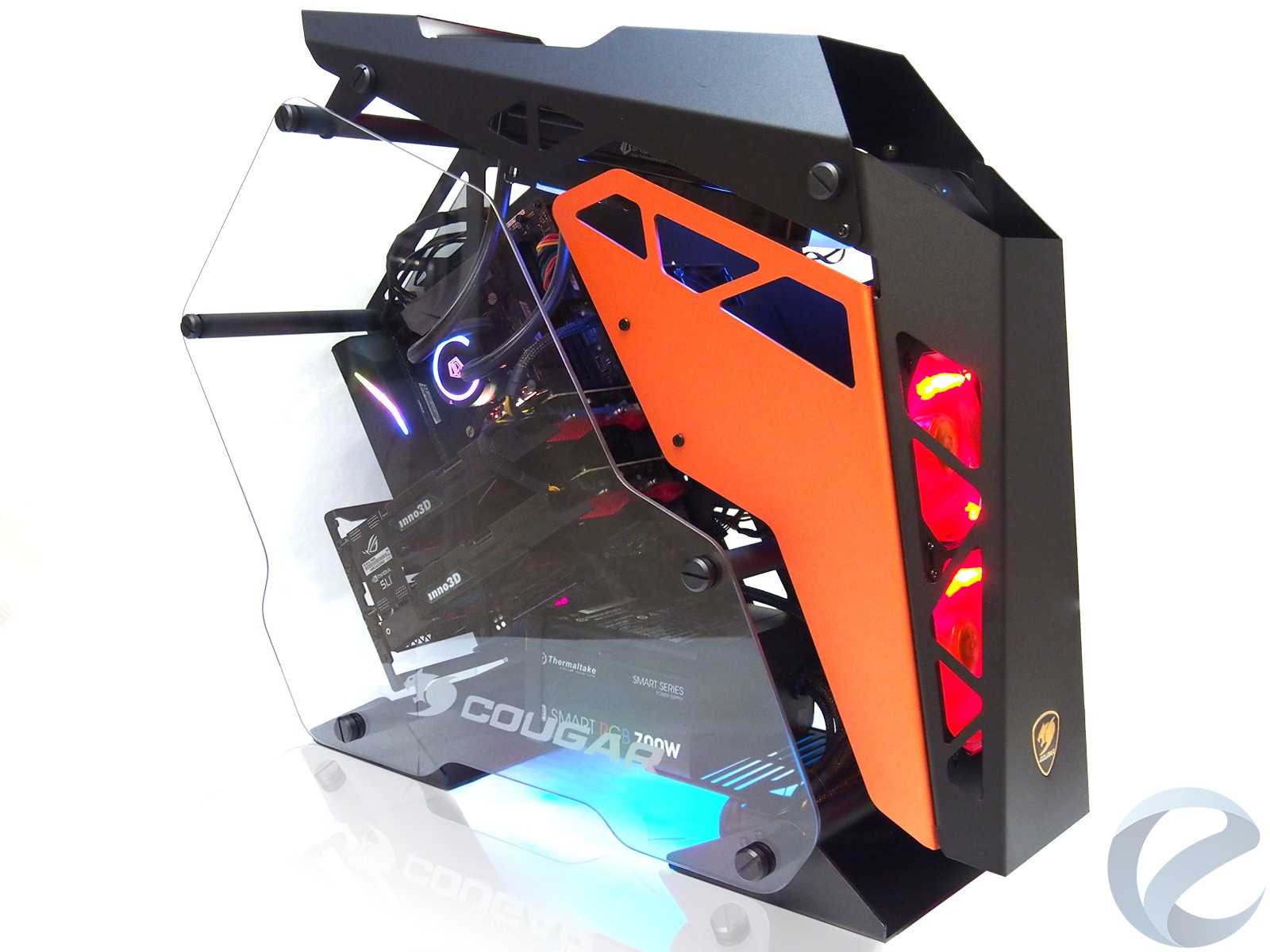 Нельзя не отметить, что при его создании уделили немало внимания не только внешнему виду, но и жесткости конструкции, которая фактически большей частью держится на двух крупных опорах и задней стенке рамной конструкции. Толщина металла и боковых панелей из закаленного стекла подобраны с хорошим запасом прочности. Для сборки ПК на базе топовых комплектующих препятствий не будет, корпус готов к конфигурациям с производительными жидкостными системами охлаждения и несколькими видеокартами. Конечно, создание своеобразной «иконы стиля» не обошлось без мелких нюансов и ограничений, которые наверняка со временем отшлифуют или немного изменят в будущих модификациях, и тогда этот корпус можно по праву будет назвать культовым. На сегодня же Cougar Conquer — это один из самых красивых и стильных корпусов, производимых «на потоке», который придется по душе энтузиастам, фанатеющим от вычурных форм, броских агрессивных панелей, ярких подсветок и необычных технических решений.
