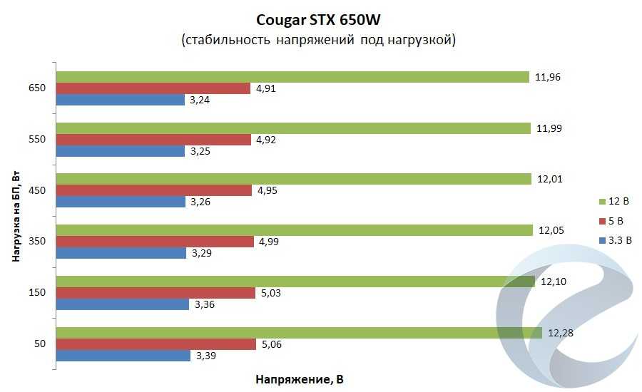 В ходе тестов были получены следующие результаты для основных линий питания под нагрузкой: