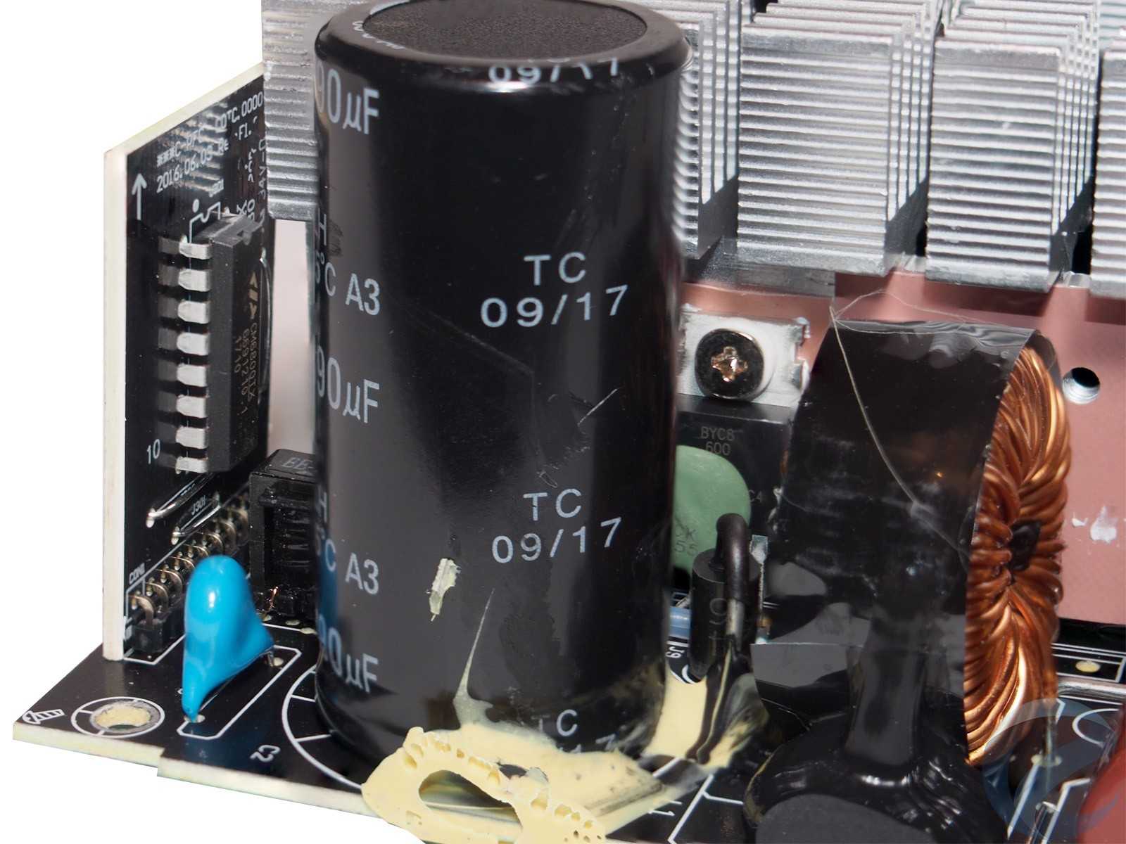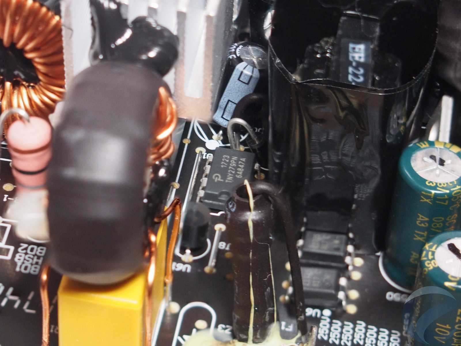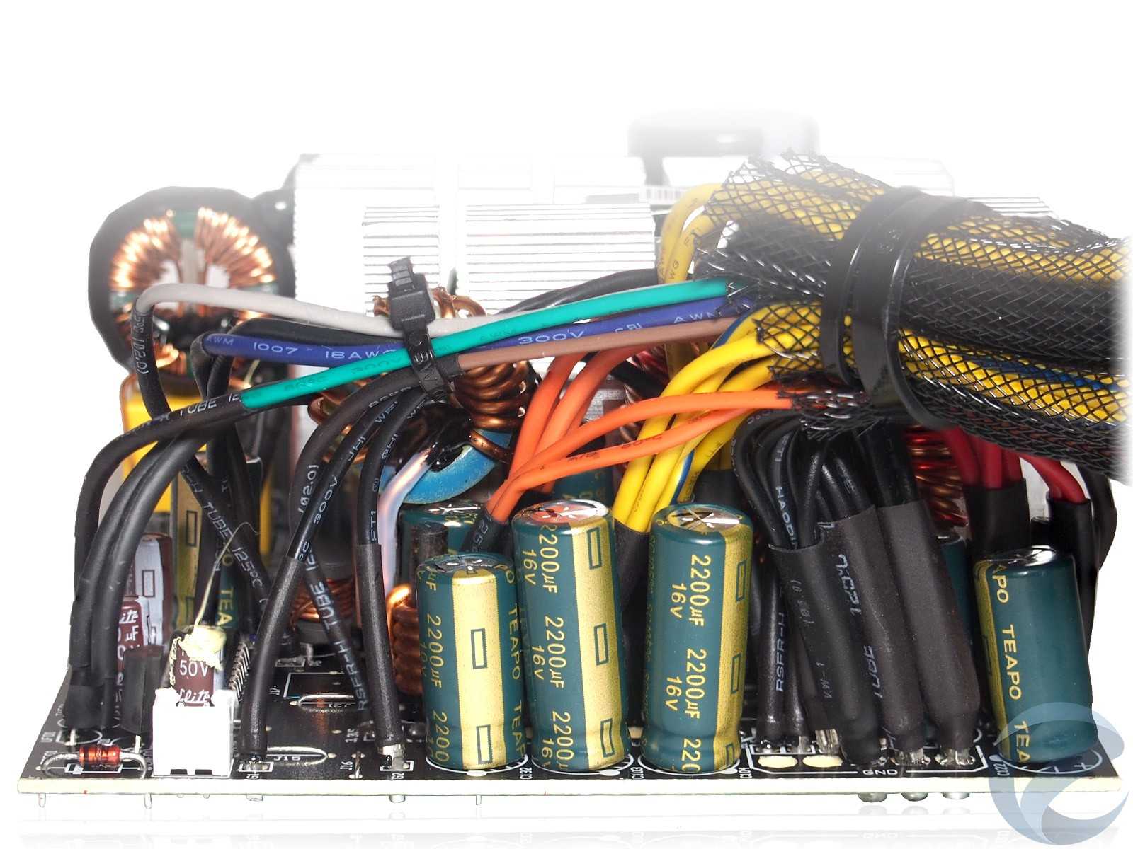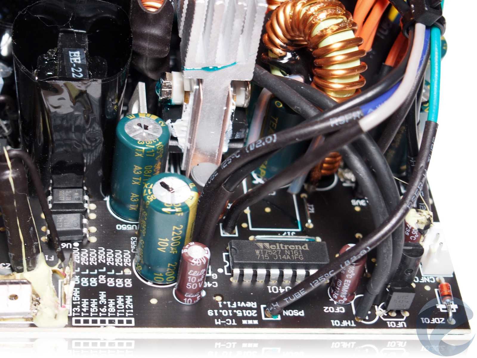 В цепи фильтрации выходных напряжений установлены также конденсаторы производства Teapo, рассчитанные на температуру до 105 градусов Цельсия.