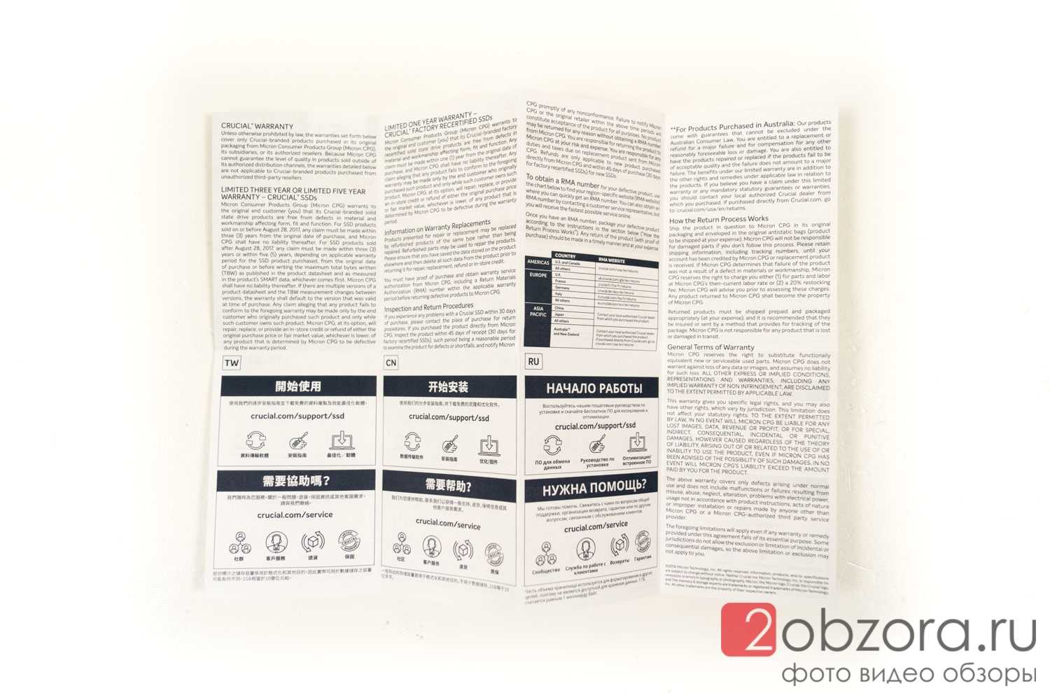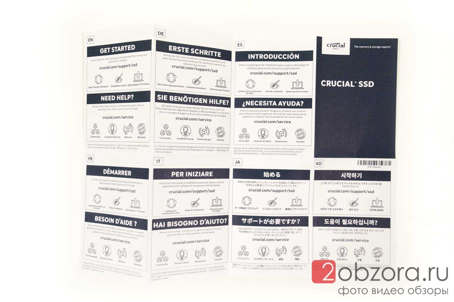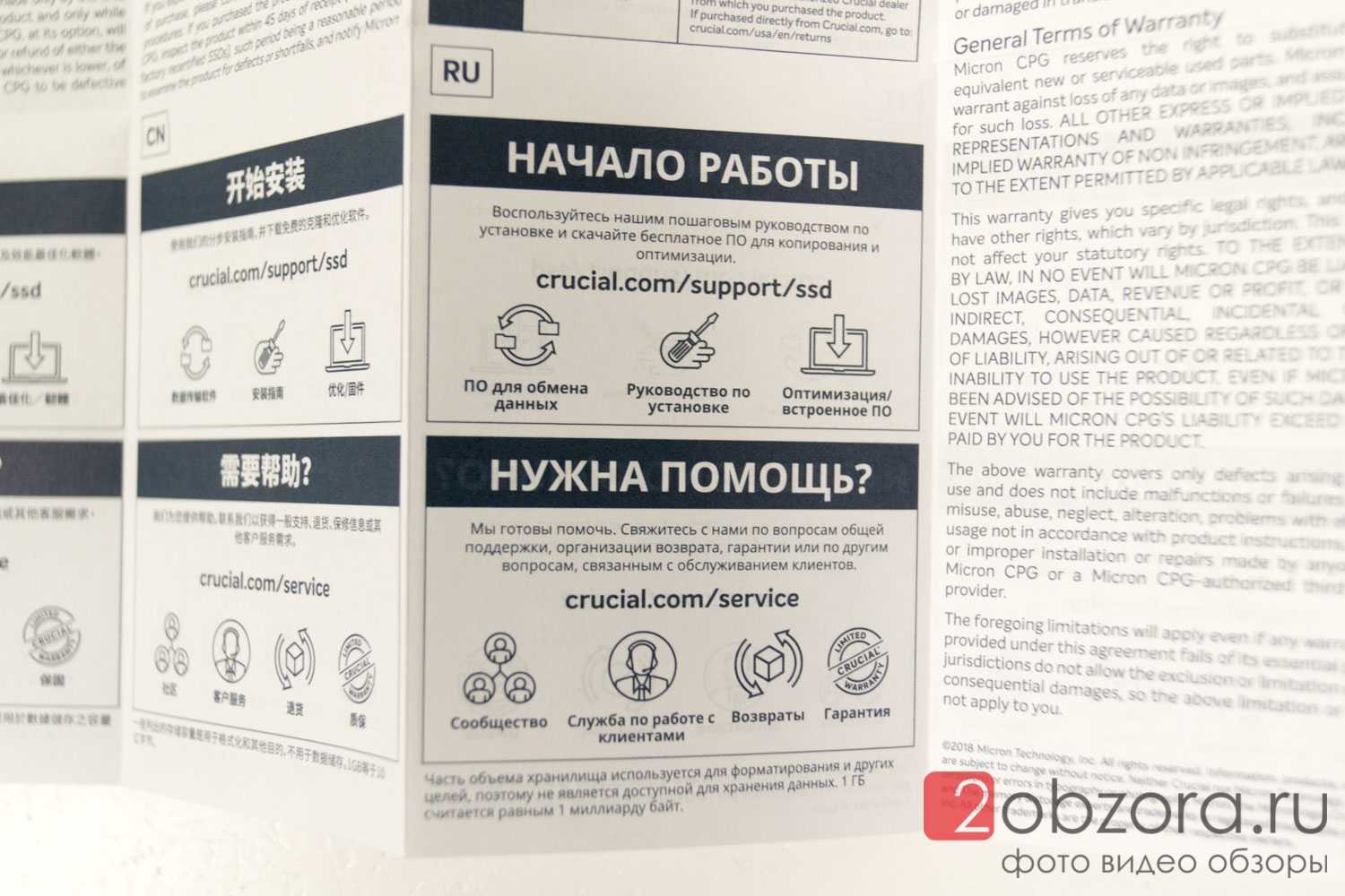 Возвращаемся к обратной стороне упаковки SSD диска BX500 и рассмотрим ее подробнее. На русском языке никакой информации. Но нам говорят, что есть софт для переноса/миграции данных, инструкция по установке и оптимизация/обновление при помощи прошивок (будем надеяться, что они реально будут выходить). Также указана ссылка на сайт производителя с поддержкой по твердотельным SSD накопителям.
