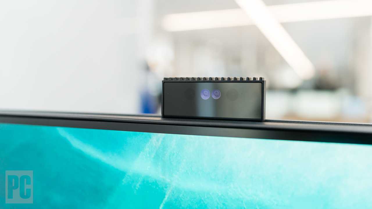 A speaker bar runs the width of the system below the display. The two stereo speakers produce surprisingly rich sound. I even found myself enjoying music playback with something approaching a punchy bass response. The sound certainly won’t rattle the windows, but it has more than enough impact and clarity for videoconferencing via the better-than-average 2-megapixel infrared (IR) webcam…