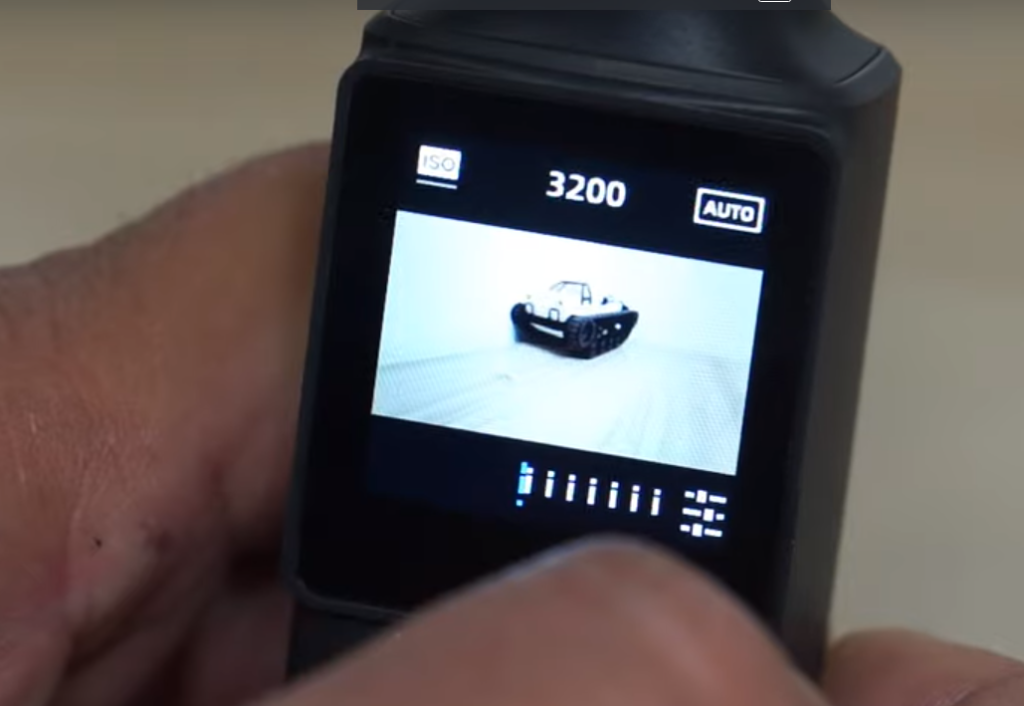 Объектив имеет светосилу f/2.0, что не слишком хорошо, однако данное решение продиктовано желанием максимально уменьшить устройство. Интересно, что камера поддерживает управление жестами. Однако на практике это удобно лишь в автоматическом режиме, при углублении в настройки следует использовать смартфон (но в последних обновлениях есть возможность коррекции профессионального режима без телефона) так как настроек действительно много и они существенно меняют работу устройства. Например, при записи видео в плоском профиле D-Cine в ручном режиме (с контролем скорости затвора и чувствительности ISO) расслоение элементов интерфейса станет сложным, ведь в жестах легко запутаться из-за маленького экрана.
