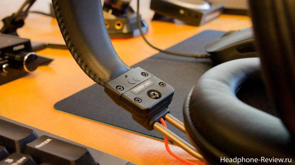 Наушники не соскальзывают благодаря плотной полоске из толстой кожи. Оголовье и чашки соединены металлическими направляющими, которые позволяют отрегулировать посадку для наиболее комфортного использования.