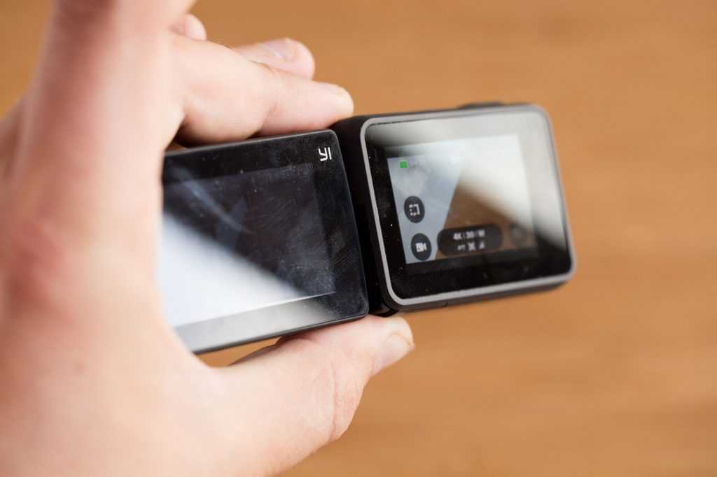 На Xiaomi Yi 4K+ приходится камеру разворачивать (а там экран уже выключился), нажимать кнопку наполовину чтобы задний ЖК экран включился и стараться на блеклом экране увидеть отсчёт времени, которое прошло с момента начала записи. Очень неудобно пользоваться на солнце (в жарких странах).