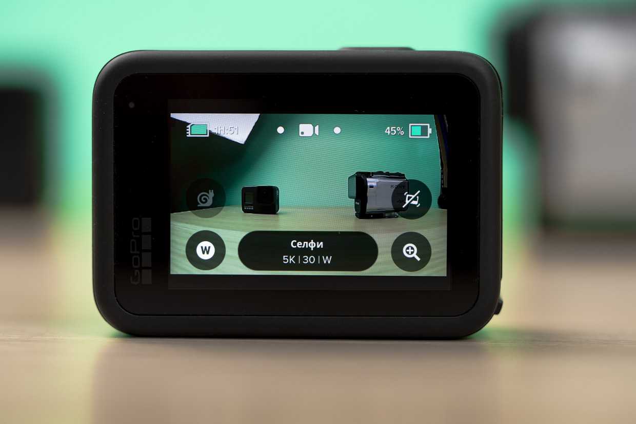 В GoPro Hero 8 Black вы также сможете быстро настраивать такие опции, как масштабирование, стабилизация, баланс белого, компенсация экспозиции и другие, с помощью четырёх экранных кнопок. Конечно, периодически из-за маленького размера экрана вы будете нажимать не на те опции, но, это лишь незначительное неудобство, с которым можно мириться.
