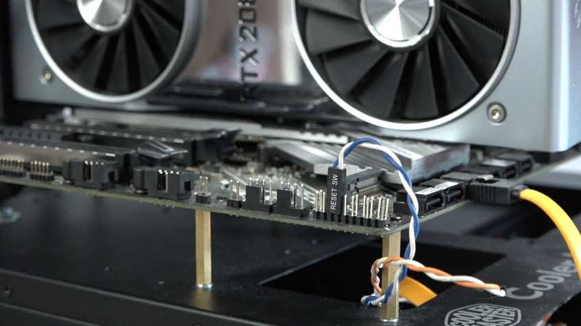 На тесты мы поставили топовый Intel Core i9-10900K. Охлаждением прикрутили трёхсекционный Thermaltake Floe Riing RGB 360 TT Premium Edition, и от них же у нас была память — две планки на 3600 и 4400 МГц. Заработала она, кстати, без вопросов