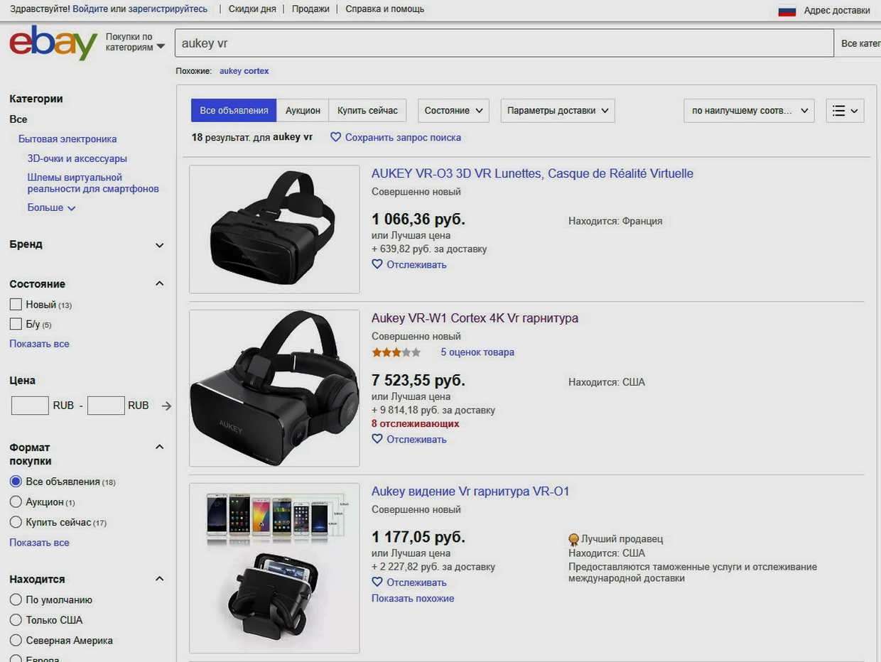 В ноябре на просторах eBay появились никому неизвестные шлемы виртуальной реальности с логотипом популярного американского бренда Aukey всего за 6 тысяч рублей с доставкой через посредника.