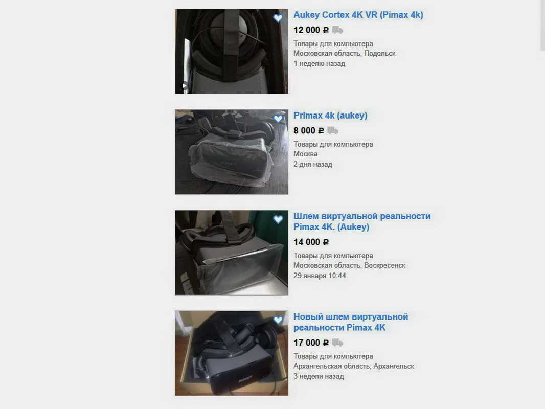 Собственно Pimax 4K найти намного проще: они есть на eBay, Amazon, AliExpress и Авито. Выгоднее всего покупать чуть-чуть бывший в употреблении у частного лица.