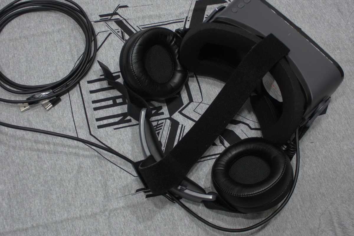 В комплект устройства входят собственно очки и гарнитура с имитацией объемного звучания. А вот контроллеров нет — совсем, как и системы отслеживания. Но о них чуть позже.