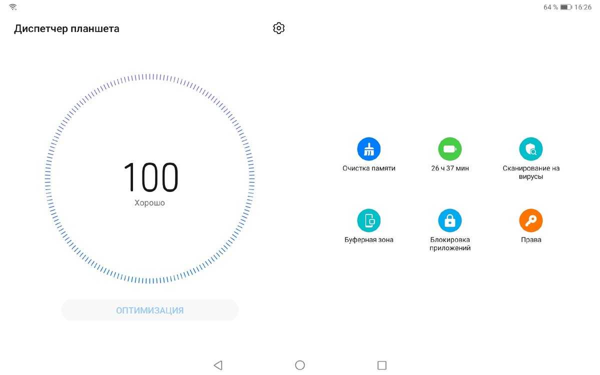 С нагревом проблем нет. Конечно, от длительных нагрузок «спинка» MediaPad M5 10 теплеет, но не настолько, чтобы об этом приходилось хотя бы просто задумываться. Троттлинг фактически отсутствует: уровень производительности CPU за 15 минут теста не опускался ниже 89 % от максимума.