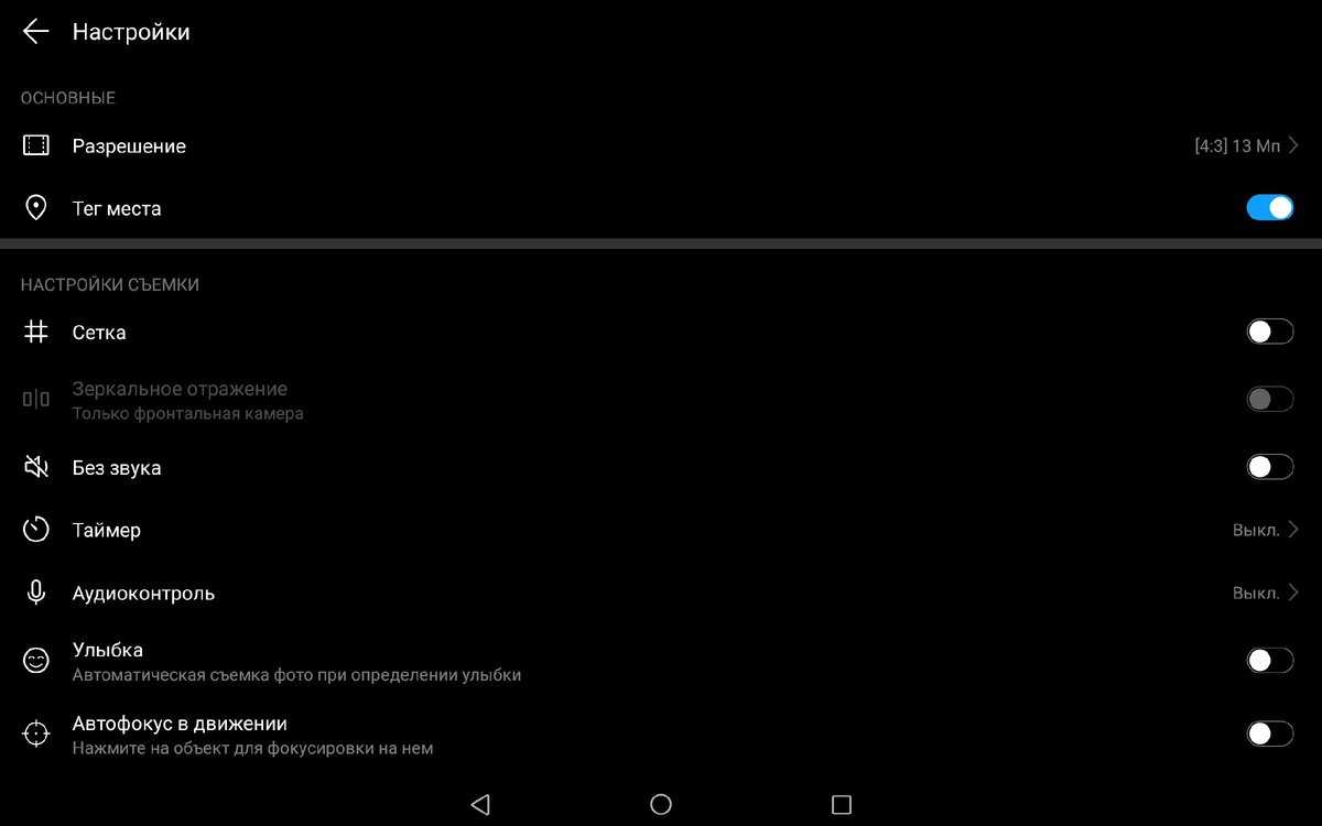 Основная камера MediaPad M6 10.8 Wi-Fi с диафрагмой f/0 и разрешением 4160 x 3120 пикселей (12.98 мегапикселей).