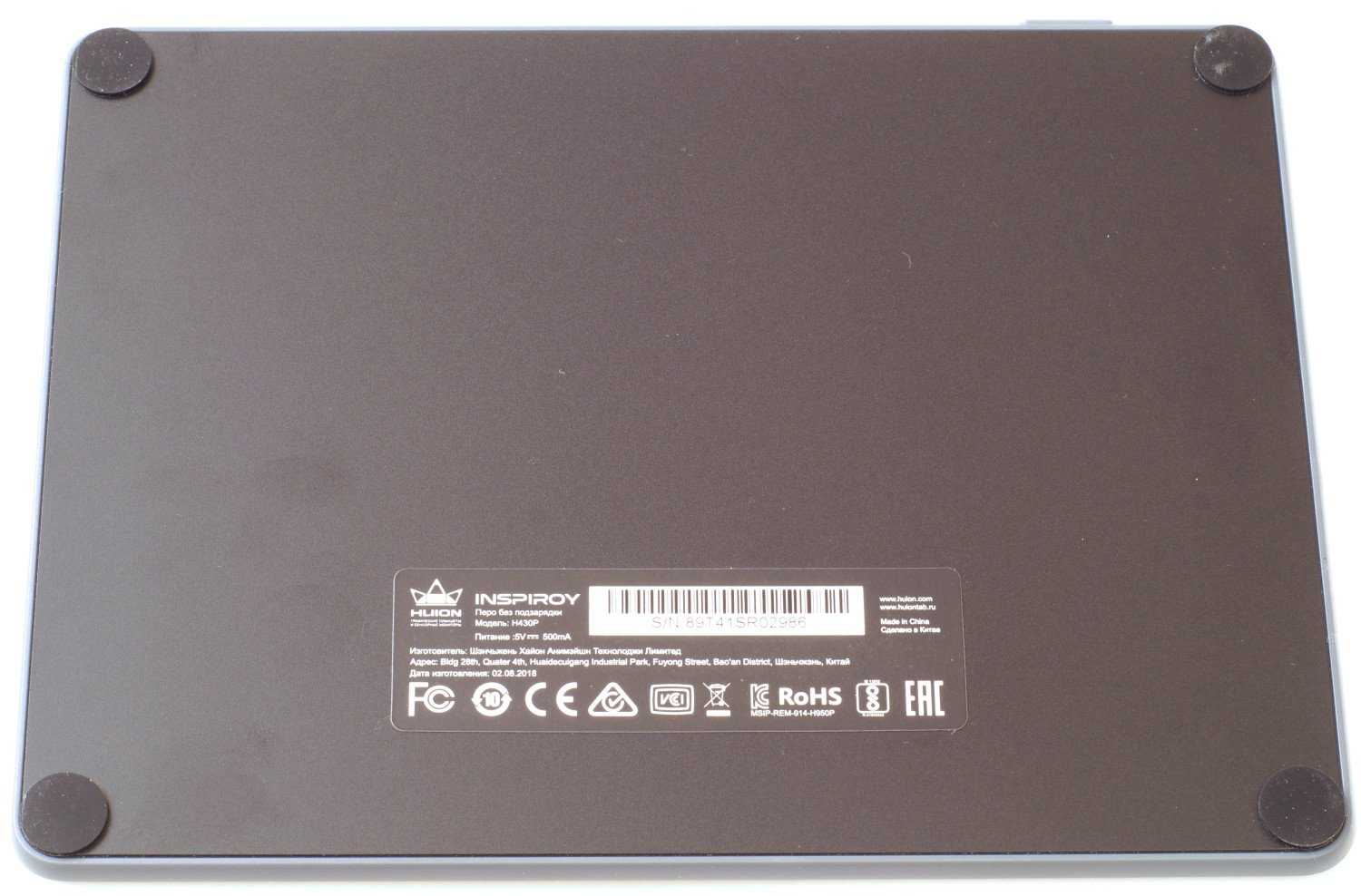 С обратной стороны размещена наклейка с информацией о модели Huion H30P, производителе, дате изготовления и серийном номере.