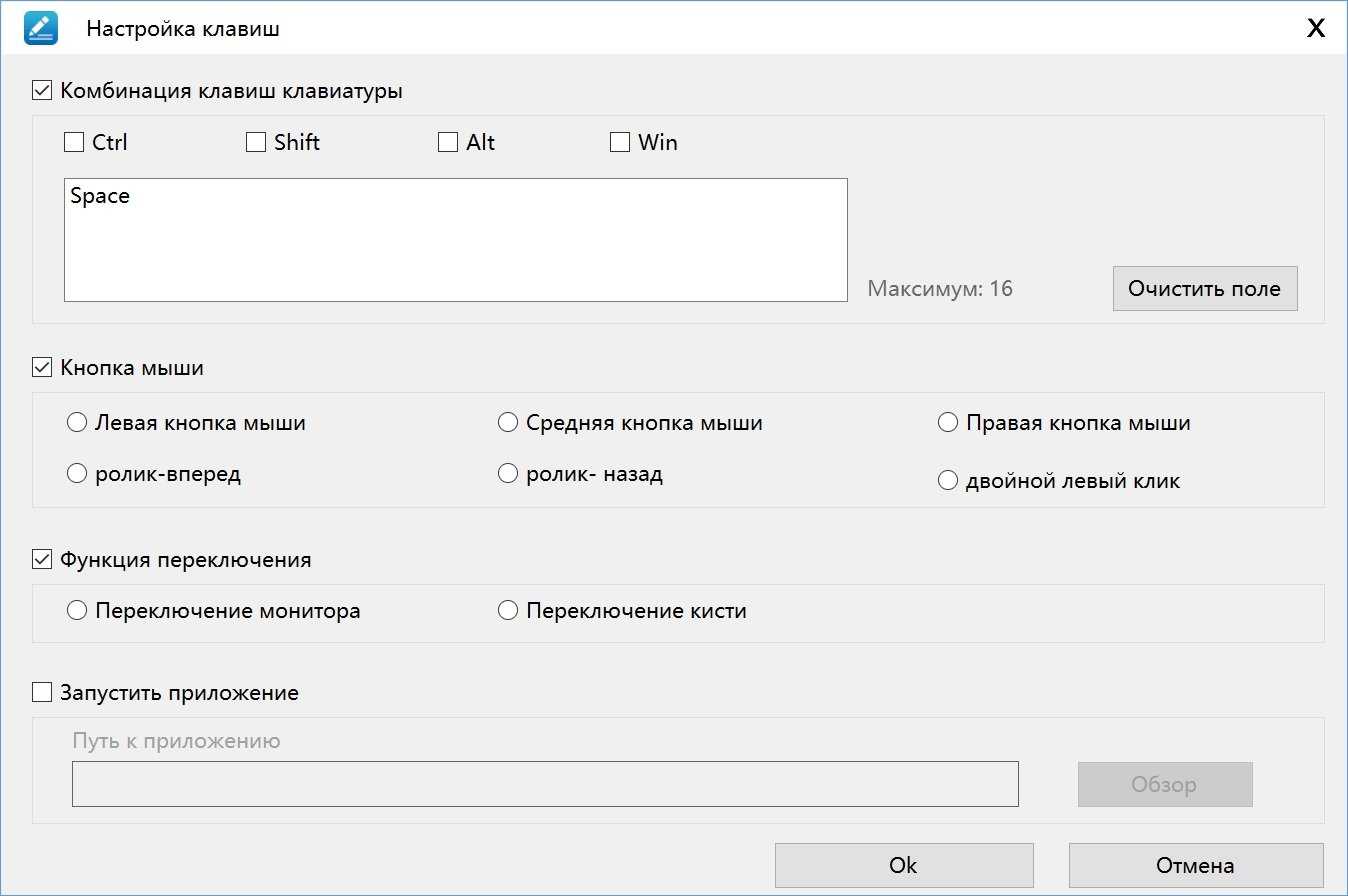 На горячие кнопки можно настроить сочетания клавиш на клавиатуре, клавиши и колесико мышки, а также специфические переключатели, например, для мониторов или кистей. При желании можно превратить горячую клавишу в шорткат для приложения. Кастомизация клавиш на высоте.