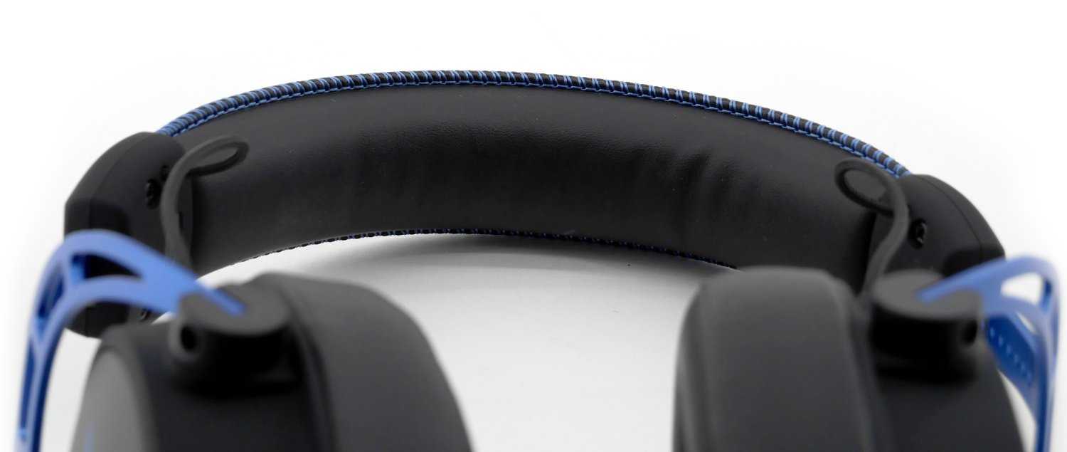 Оголовье HyperX Cloud Alpha S выполнено из металла. Детали, которые соединяют чаши, получили матовый синий цвет, а верх обволакивает мягкая накладка из заменителя кожи. Сама по себе, конструкция очень красивая и не вызывает негативных чувств.