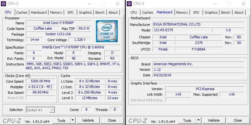 Для того чтобы разогнать Core i7-9700KF на материнской плате EVGA Z370 Micro-ATX, задействуем «Vdroop= -50% Small» в настройках BIOS. И опытным путем подбираем значение Vcore для выбранной частоты процессора. Наш экземпляр Core i7-9700KF удалось разогнать до частоты 5.2 ГГц при напряжении 1.37 В и дельте AVX -2.