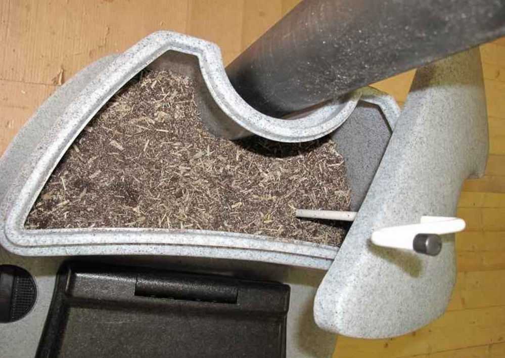 Вторым шагом станет наполнение торфом резервуара для сбора отходов. Перед первым использованием в бак биотуалета достаточно всыпать несколько ведер сухой смеси. Равномерно разровняйте смесь по дну резервуара, если при засыпании она образовала горку.