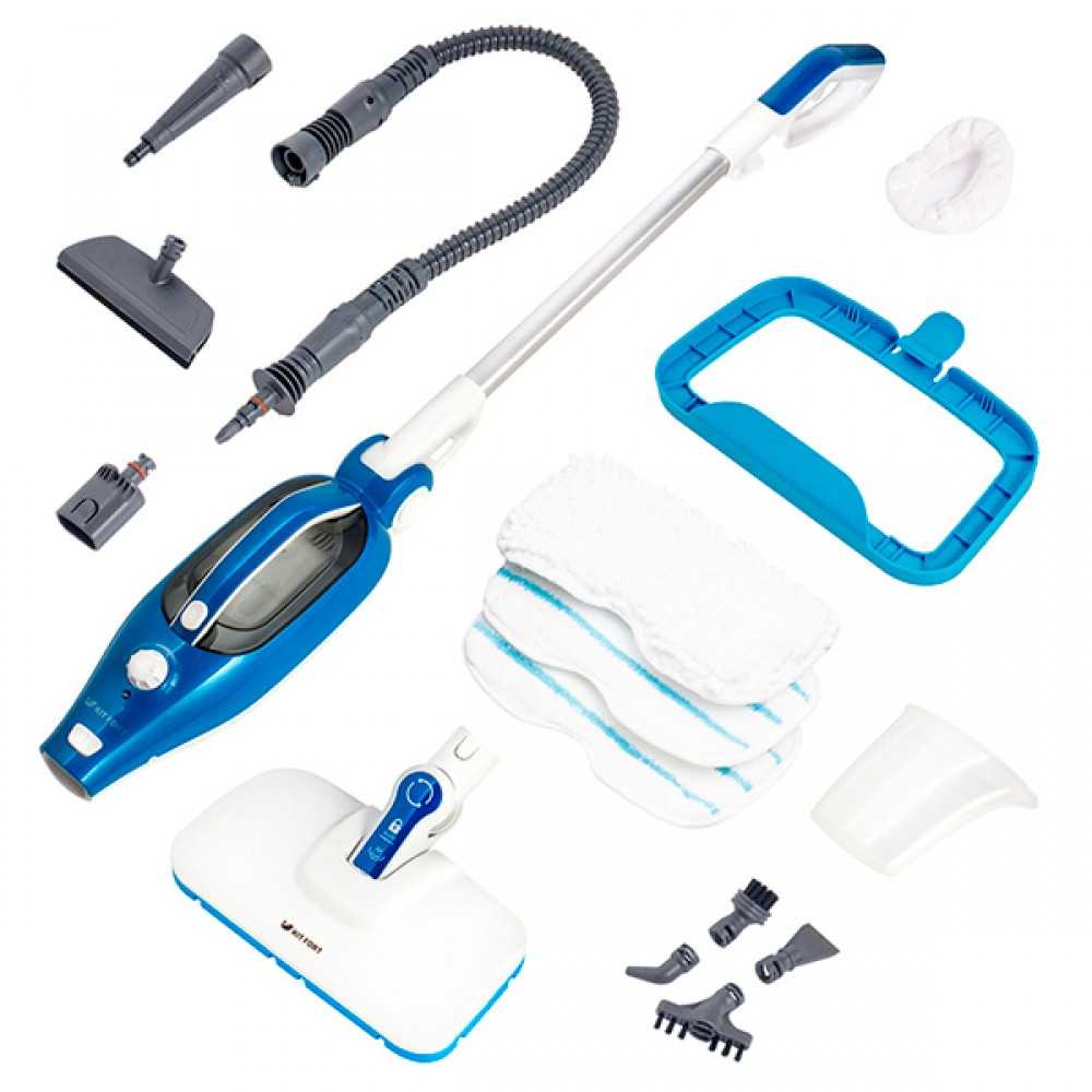 Выпускается швабра в двух цветах: в белом и в голубом. От предыдущих моделей она отличается мощностью, которая составляет 1500 Вт. Справится с размягчением и удалением застарелых загрязнений на поверхности. Очищает не только гладкие покрытия, но и ковровые тоже. Это самая дорогая модель из представленных в рейтинге.