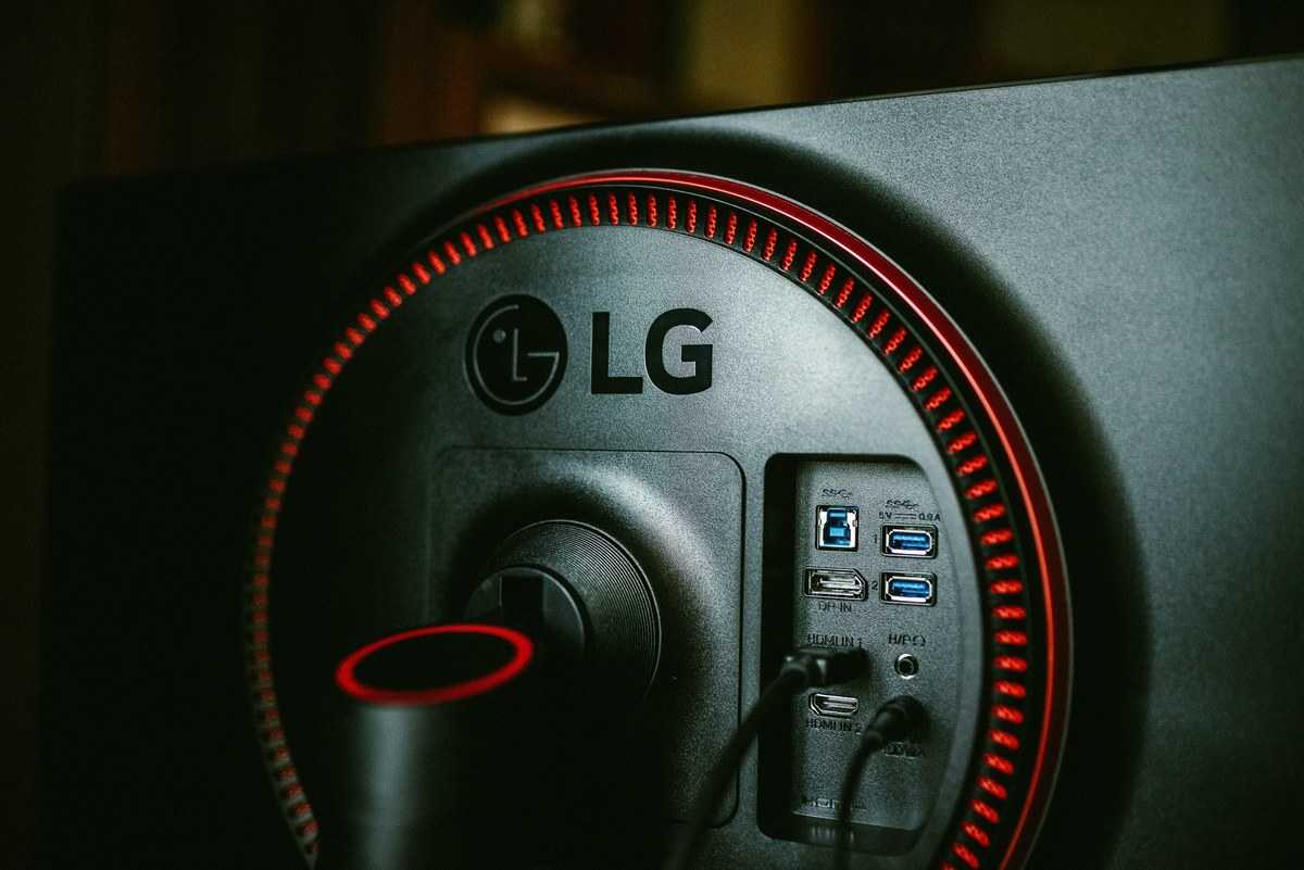 GL850-B выполнен в классическом для игровых «моников» от LG лаконичном стиле: экран с тонкими рамками и массивная треугольная подставка под ним. Чёрный цвет разбавлен красными вставками. Светодиодной подсветки, которую любят добавлять игровые девайсы, здесь нет.