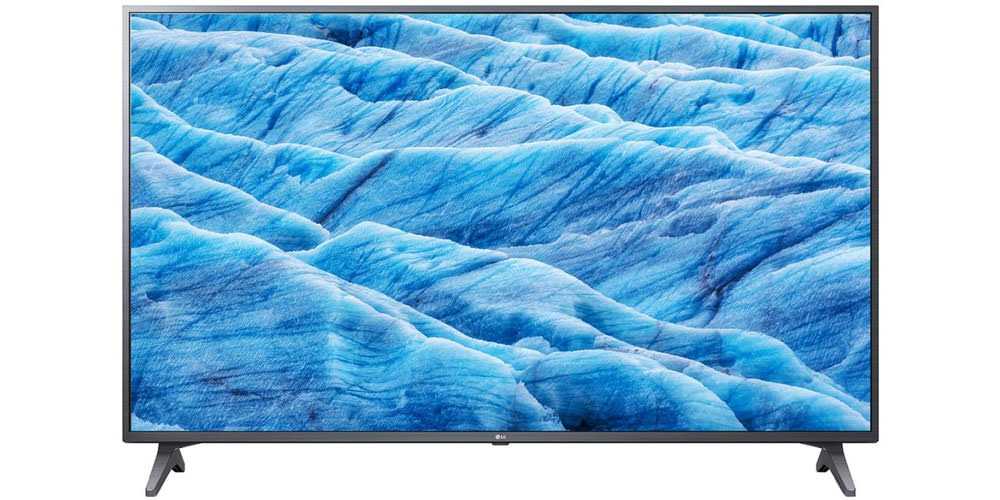 50-дюймовый экран – единственный из линейки UM7300, в котором используется не IPS, а VA-матрица, поэтому углы обзора у него немного хуже, зато цветопередача контрастнее и черный цвет глубже. За обработку изображения отвечает привычный для корейского производителя тандем четырехъядерного процессора и технологии Active HDR. Смарт ТВ реализовано на базе WebOS 4.5 с поддержкой AirPlay 2 для передачи контента с айфона и возможностью устанавливать приложения через LG Content Store.