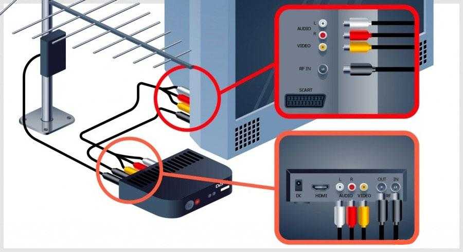- Для начала потребуется соединить тюнер с антенной. Если регион проживания или местность не позволяют установить качественный и стабильный сигнал, лучше провести кабель напрямую от провайдера.