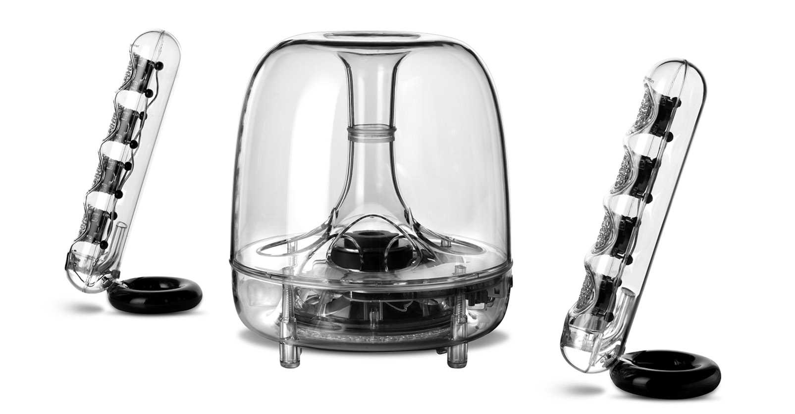 Музыка исходит из двух 1-дюймых твитеров и двух 5,25-дюймовых вуферов. Пиковая мощность составляет 200 Вт, встроенный усилитель распределяет по 20 Вт на каждый из широкополосных динамиков и 50 Вт на низкочастотные. Потребляет колонка 8,7 Вт в стандартном режиме и 0,43 Вт в экономном, который включается переключателем на задней стенке. Воспроизводимый частотный диапазон отмечен на 35-22000 Гц, частота кроссовера 2800 Гц.