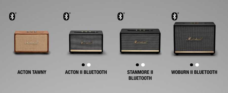 Всё семейство: Action II (с мощностью 60 Вт), Stanmore II (с мощностью 80 Вт) и Woburn II (с мощностью 110 Вт).