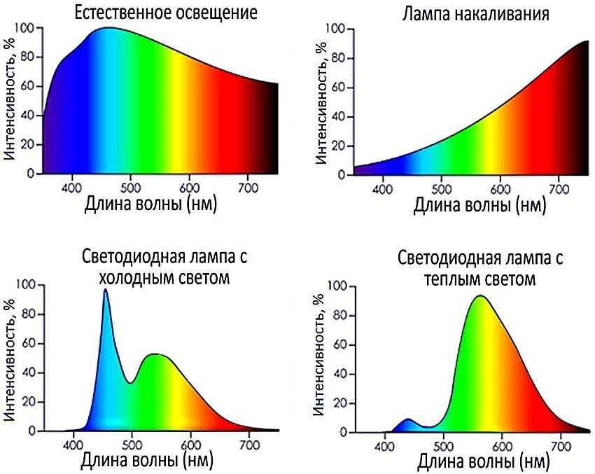 - Цветовая температура. Лампы, которые можно использовать дома, имеют цветовую температуру около 3000 К. Они светят теплым желтым светом, приближенным к натуральному. Лучшая в этом плане – лампа накаливания, далее идет галогенная, люминесцентная и светодиодная;